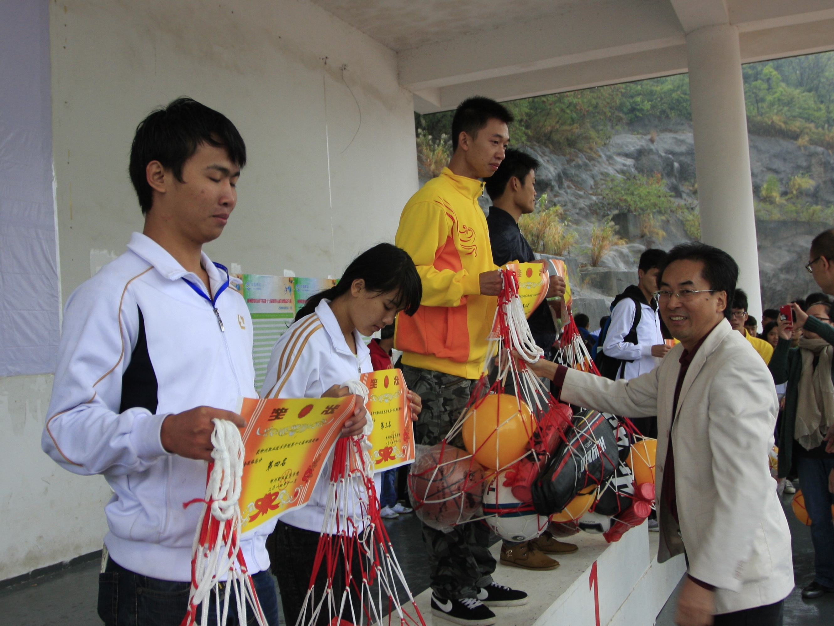 新闻网消息(记者 石玉丹 摄影 邱禹、学院电视台)几名获奖者手捧奖状、手拎球拍、排球和汽排球等“战利品”,一同站在冠军的位置上与大家分享胜利的喜悦。——7日上午11:45分,在纷纷扬扬的秋雨中,学院在主席台上设置了领奖台,在“运动员进行曲”的陪伴声中举行了颁奖仪式。伴随着人群中不时响起的欢呼声,运动会总裁判长、公共基础部副主任李革宣读了获奖集体和获奖个人名单。