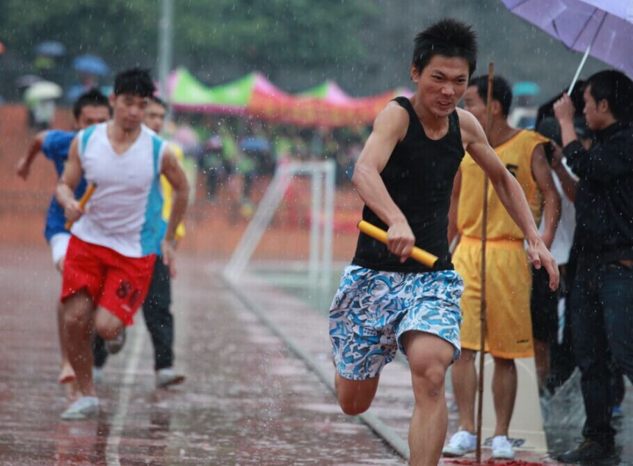 负责运动员救护的校医说,本届运动会前来要求治疗擦伤碰伤的比前两届的都少,说明各系部对于运动员的备赛有充足的技术准备和心理准备。据总裁判长李革说,7日上午8点钟开赛的男子5000米长跑,近百名运动员表现出了相当可贵的拼搏精神,他们不畏凄风冷雨,坚持到最后,令全场师生动容。相比上届一人破一项纪录的战绩而言,本届运动会有六人(次)破三项纪录,为历届之最,他们是:2012汽车电子班的4名同学(接力),以48”50的成绩破男子4*100米学院纪录;2014市场营销一班的苏悠圆同学,以24”02的成绩,破男子200米学院纪录;2012一体化五班的蓝强同学,以1.77米的成绩,破男子跳高学院纪录。