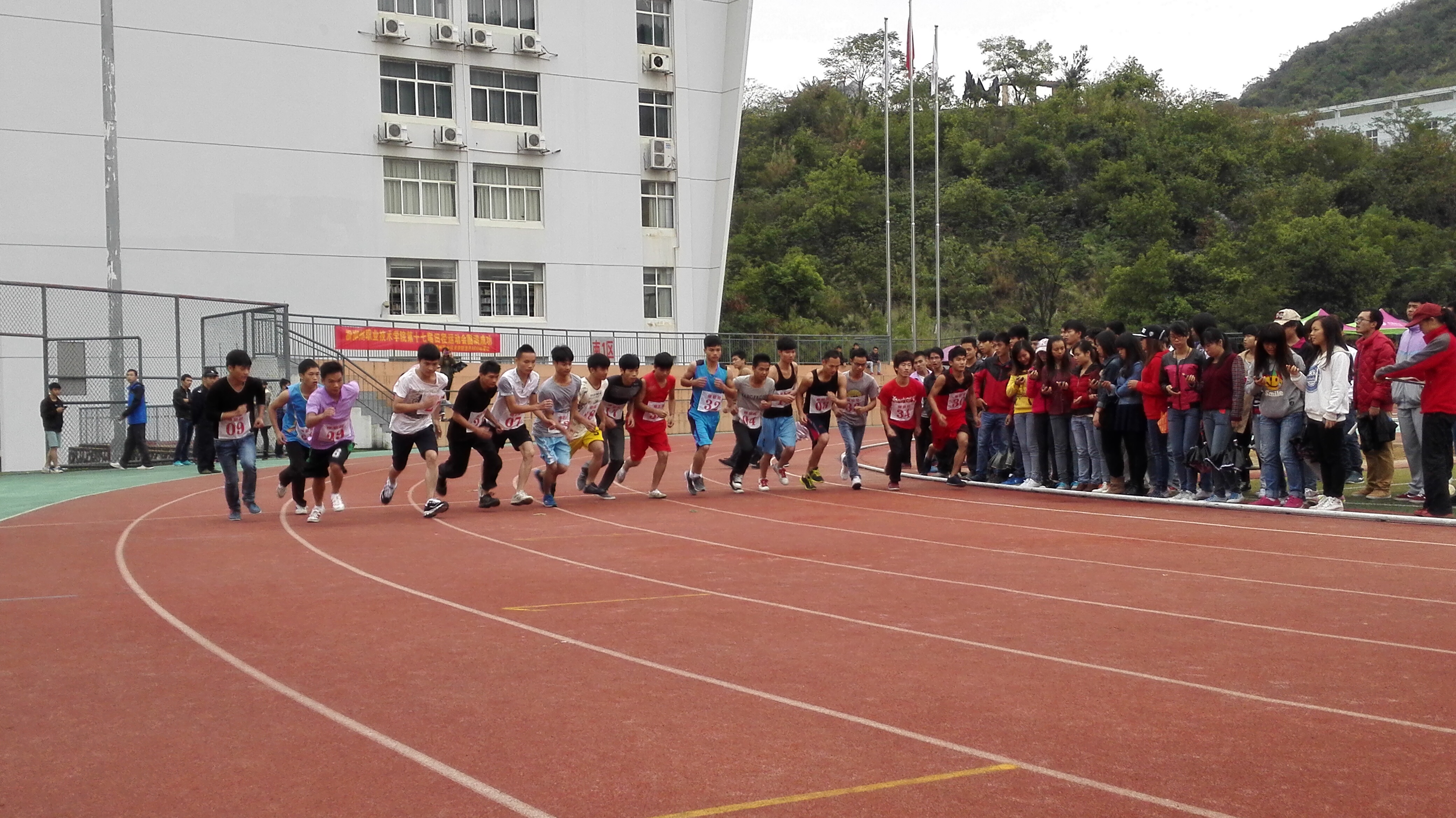 “啪!”随着信号枪的一声巨响,17位健将如脱缰的野马冲出起跑线,争先恐后地随着红色跑道飞奔!没错,赛场上正进行激动人心的男子1500米耐力赛。运动员冲出起跑线的那一刻,全场的气氛为场上而紧张。各系大本营随即传出“XX系加油!”“某某某你是好样的!”之类的加油鼓劲声。赛况是激烈的,也是讲究技巧的。第一组中,我们可以看到有些运动员一起跑就冲得非常快,导致最后体力分配不均而被迫减速,相反,有的选手就非常讲究体力的分配,到最后还能提升速度,发挥出了惊人的能量!