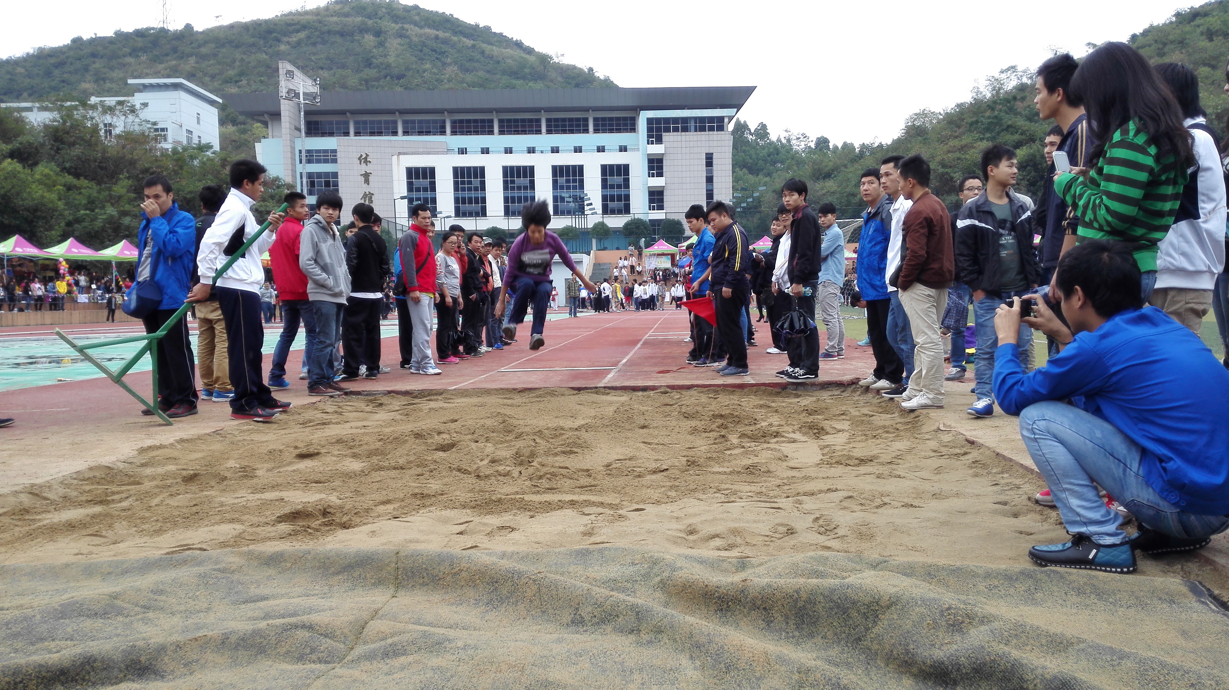 “扑哧”一声,沙子霎时间飞出场外——这是教工部女教师们正在进行有趣的跳远比赛。瞧,把冲刺,踏板,起跳这一气呵成的动作完成得如此流畅。其他选手们也不甘示弱,纷纷鼓足了劲冲刺跳跃。正在此时,谁一个脚板有力地踏了出去,只见她前脚踩沙坑,后脚踩坑外,身体不受控制地扑向沙场。嗨,差点满目沙粒……为了比赛老师们也算是蛮拼的。
