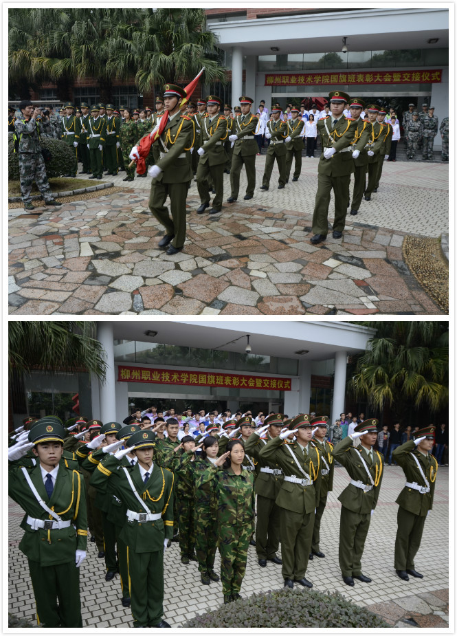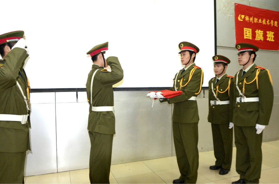 新的成员,新的血液,这就是国旗班的希望,是国旗班的未来。最后,大会在室外还开展了升旗仪式及各高校国旗班队列展示,现场100多名来自柳州各大高校的国旗班代表在我院进行了技能展示和文化交流。