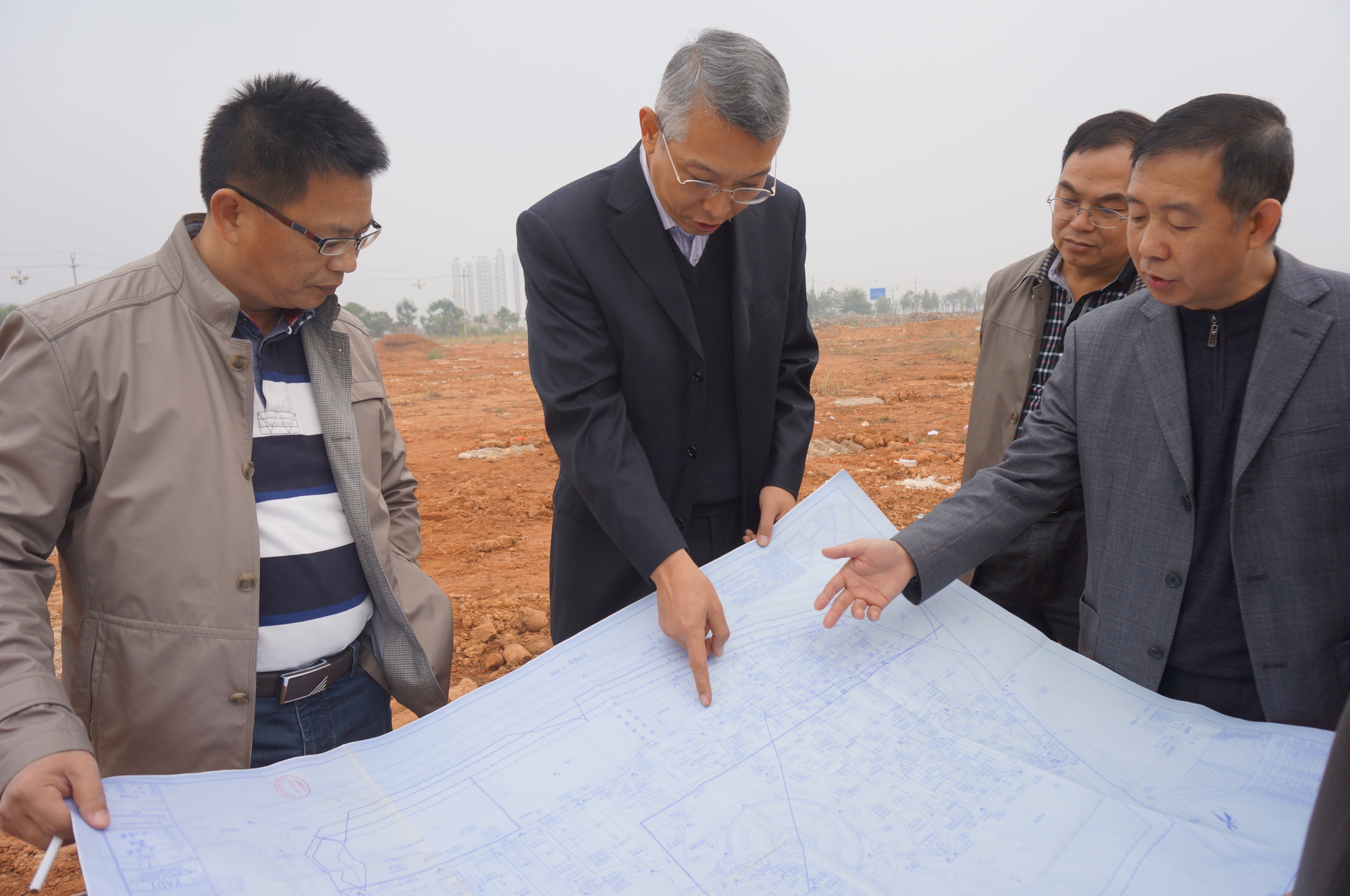 官塘新校区将于近期开工-----学院领导到官塘新校区调研项目建设进展情况