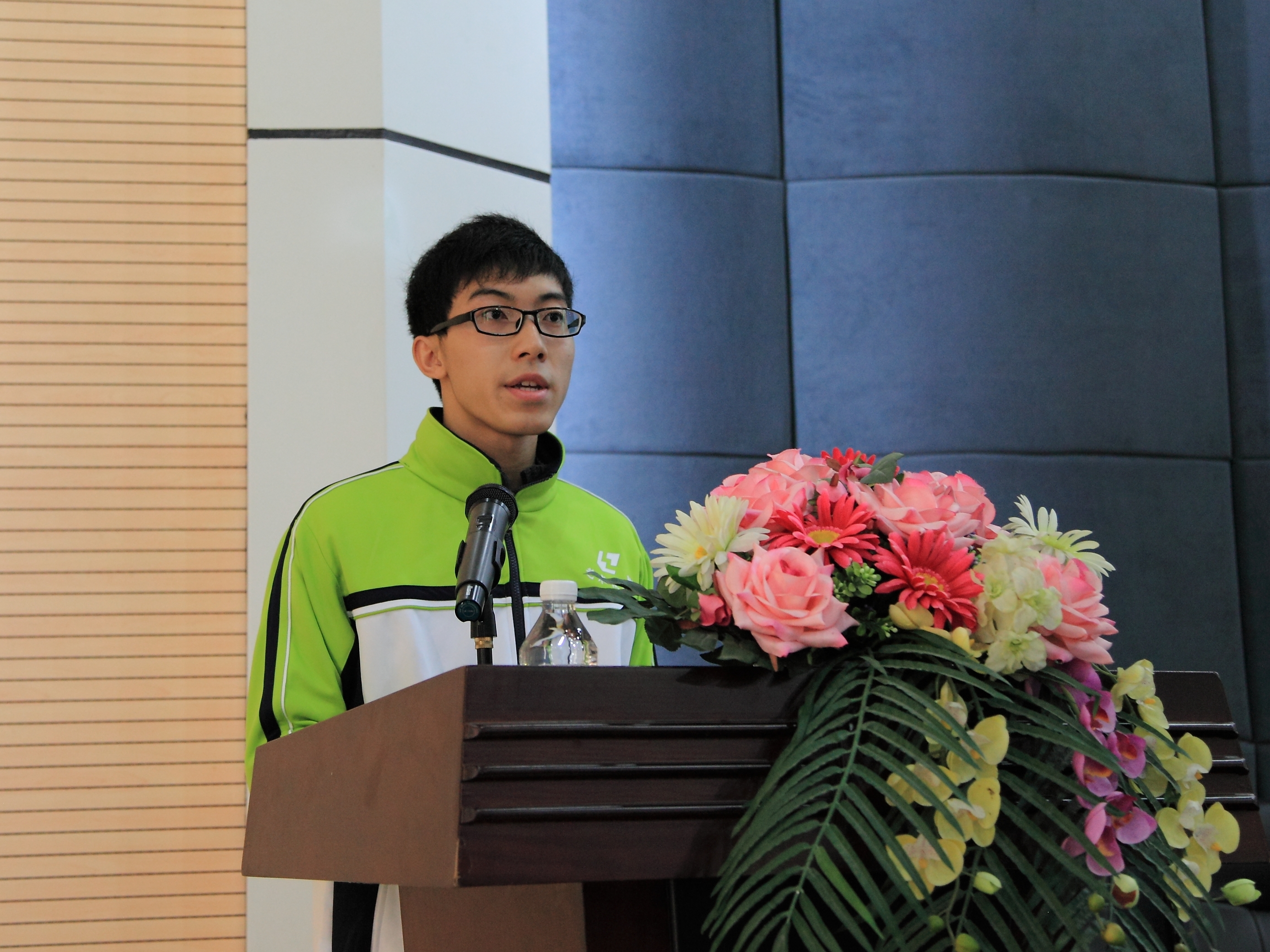 两位优秀学生代表上台感恩陈述了自己在柳职院的学习中,所获得的成长和进步,感谢柳职院领导老师的用心栽培和精心浇灌,表示要在以后的学习和生活工作中,为学校争光,发奋努力,争取更多的荣誉。