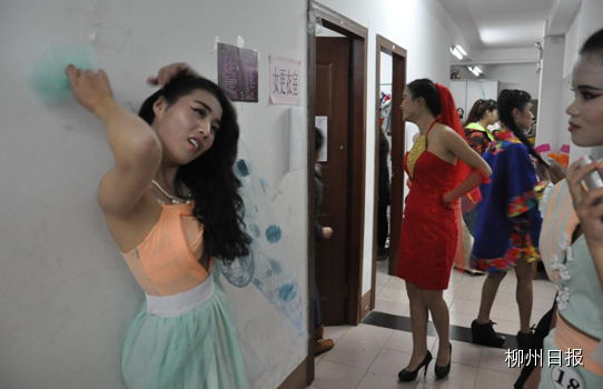 毕业秀中,除了年轻的设计师们都来自柳职院学生,所有的模特也都是柳职的学生。上图为候场中的麻豆。