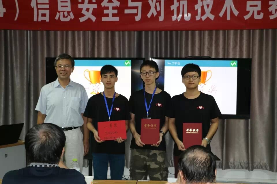 第11届全国信息安全与对抗技术竞赛获一等奖和大赛唯一“优秀选手”称号--卢国胜(左二)