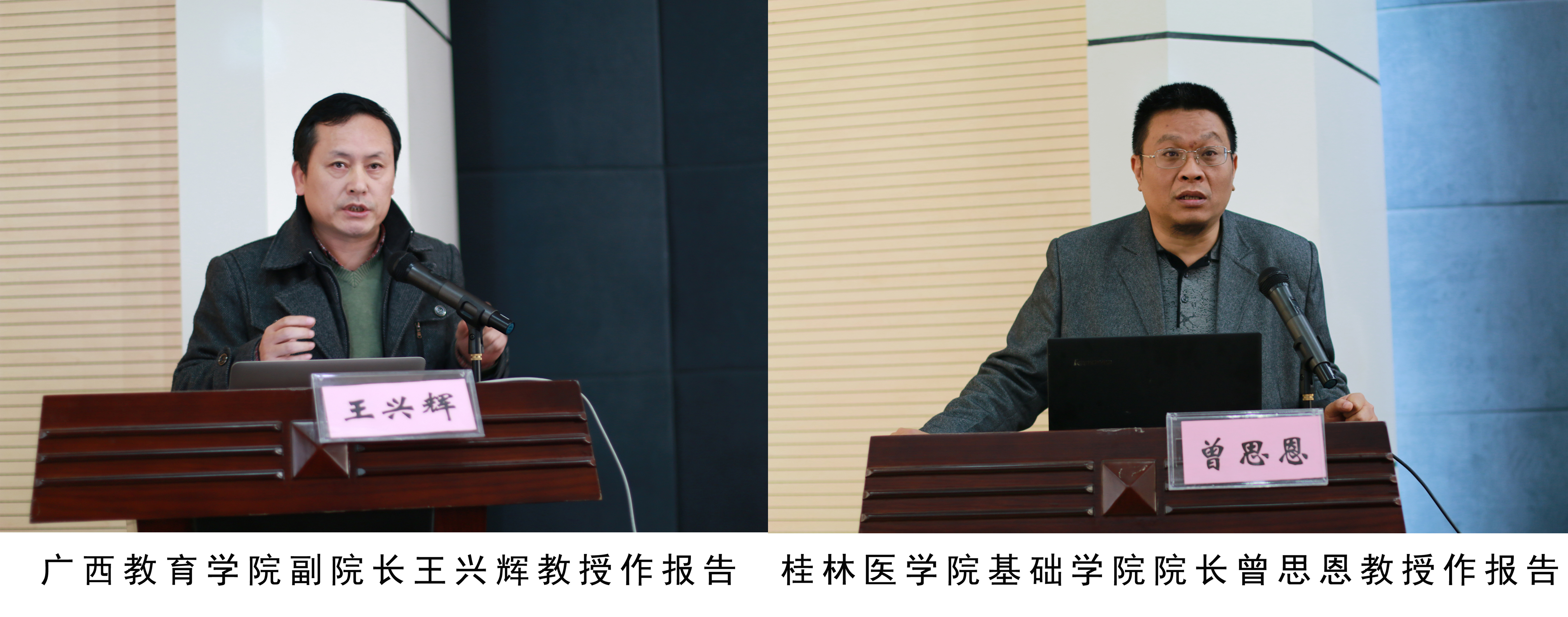 17日上午会议的专题报告有两项,一是广西教育学院副院长王兴辉教授作《混合式学习平台及教育APP案例》报告,二是桂林医学院基础学院院长曾思恩教授作《信息技术与课程深度融合的探索与思考》报告,两个专题报告让与会教师对现代教育教学理念、现代教育技术方式方法的新进展有了深入的认识和了解。来自广西师范大学漓江学院的赖晓葭老师展示了第十四届广西高校教育教学软件应用大赛优秀作品——《口语口译听力英语实训专题》教学软件,广西医科大学李波老师对作品进行现场点评。