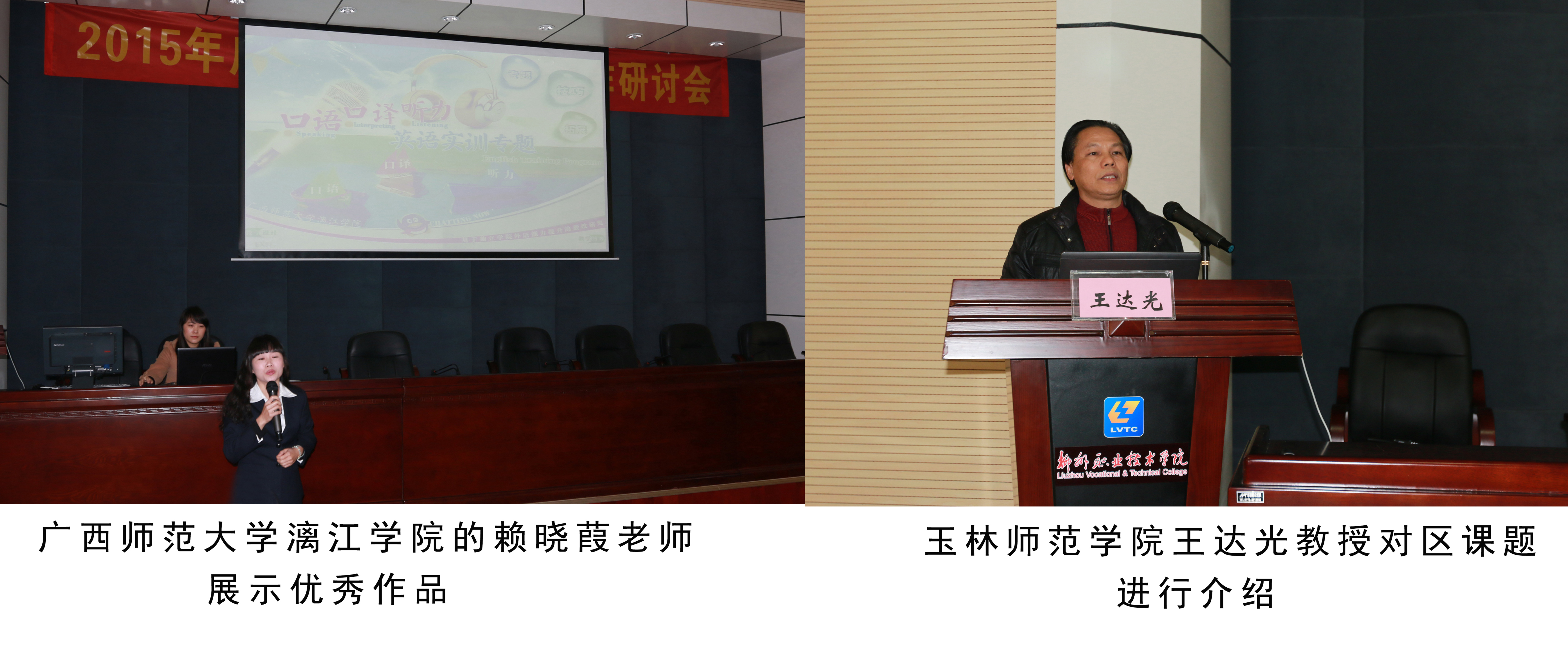 下午,玉林师范学院王达光教授就教育厅课题“广西高校教育信息化现状调查与对策研究”进行介绍。随后,参会代表分为本科组和高职高专组,分会场讨论2015年第十五届广西高校教育教学软件应用大赛比赛项目,各院校代表在总结2014年的工作经验基础上,对2015年第十五届广西高校教育教学软件应用大赛的比赛赛项、实施方案和评审工作发表了意见和建议,并对有关事宜进行了现场讨论。