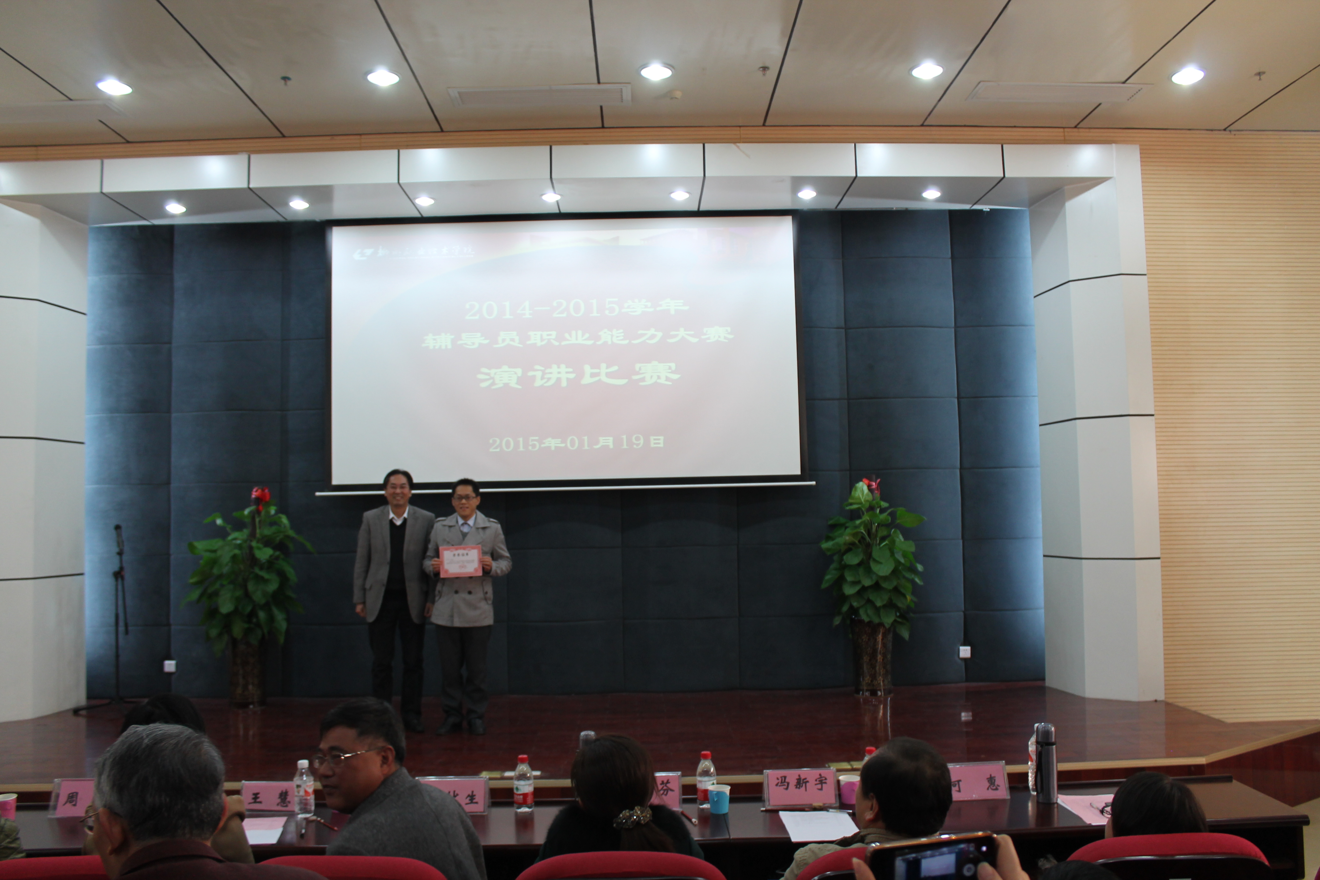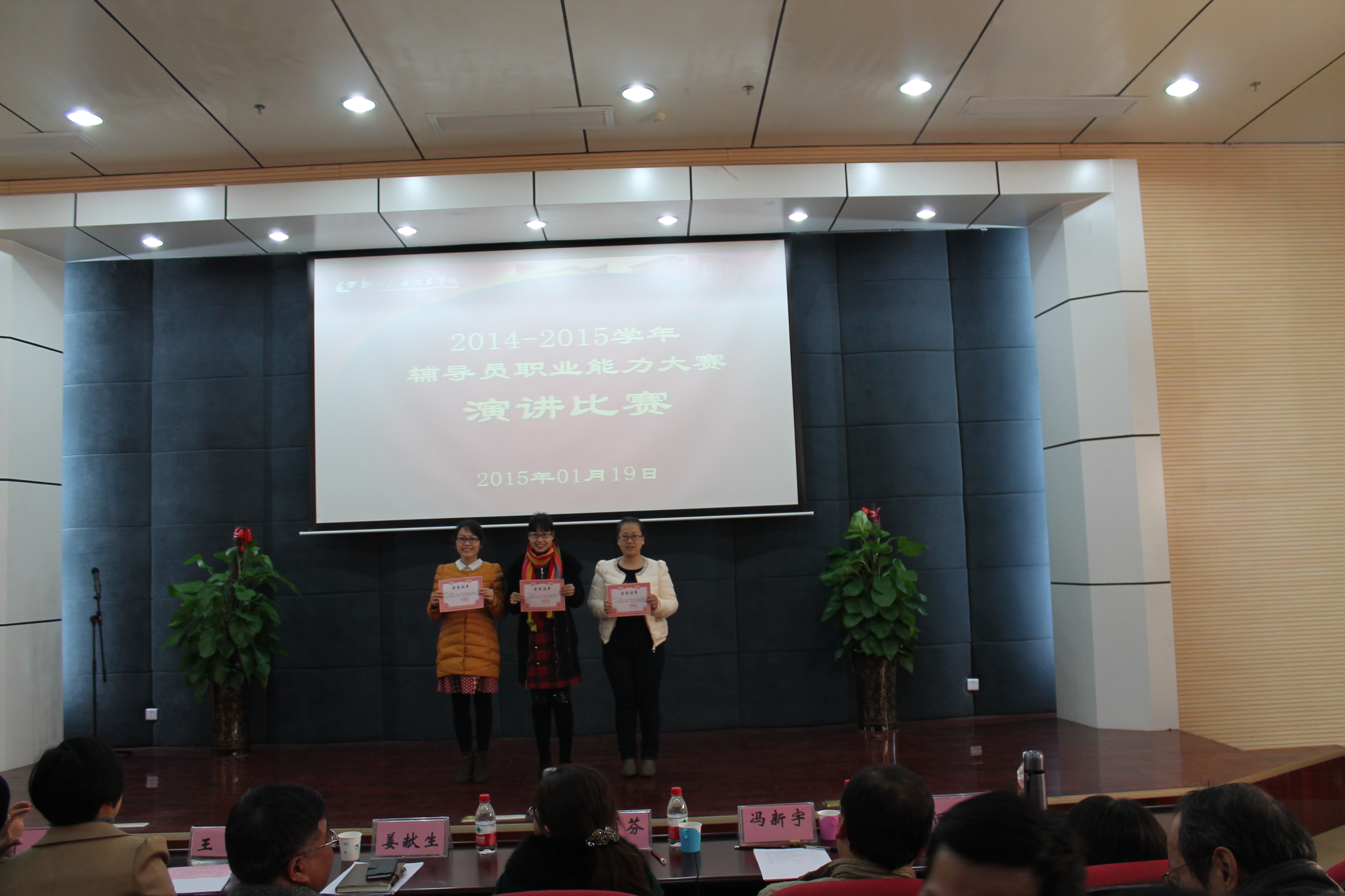 经过紧张激烈的角逐,本次比赛产生了一、二、三等奖和优秀奖,电信系的辅导员江恩志获得了一等奖,电信系龙思珍、艺术系罗柳萍、汽车系李嫦获得二等奖,汽车系韦夏利、财物系杨丽丽、机电系韦益良、田文靖、贸旅系吴鹏获得三等奖。