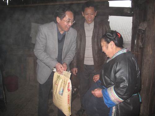 新闻网消息(通讯员/组织部 贾洪峰)2015年1月28日至29日,学院党委副书记阳旭率我院慰问组一行5人,冒着寒风和大雾,奔波200多公里,来到学院“美丽广西”乡村建设(扶贫)工作援建点——融水县拱洞乡,看望慰问我院驻村工作队员肖代多同志,并给乡政府、驻村点贫困户送去了慰问金和慰问品。