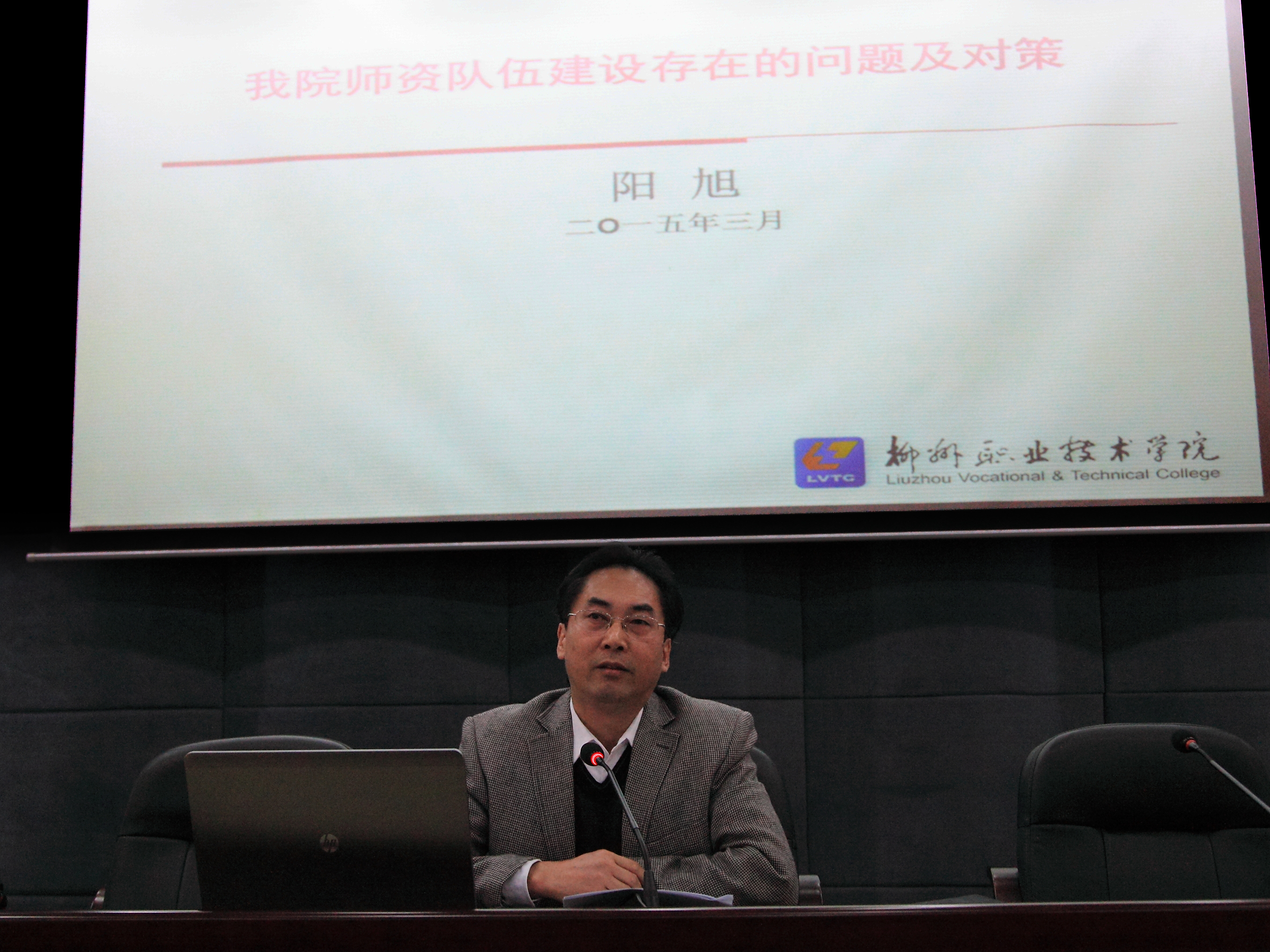 院党委副书记阳旭作《我院师资队伍建设存在问题及对策》主题发言
