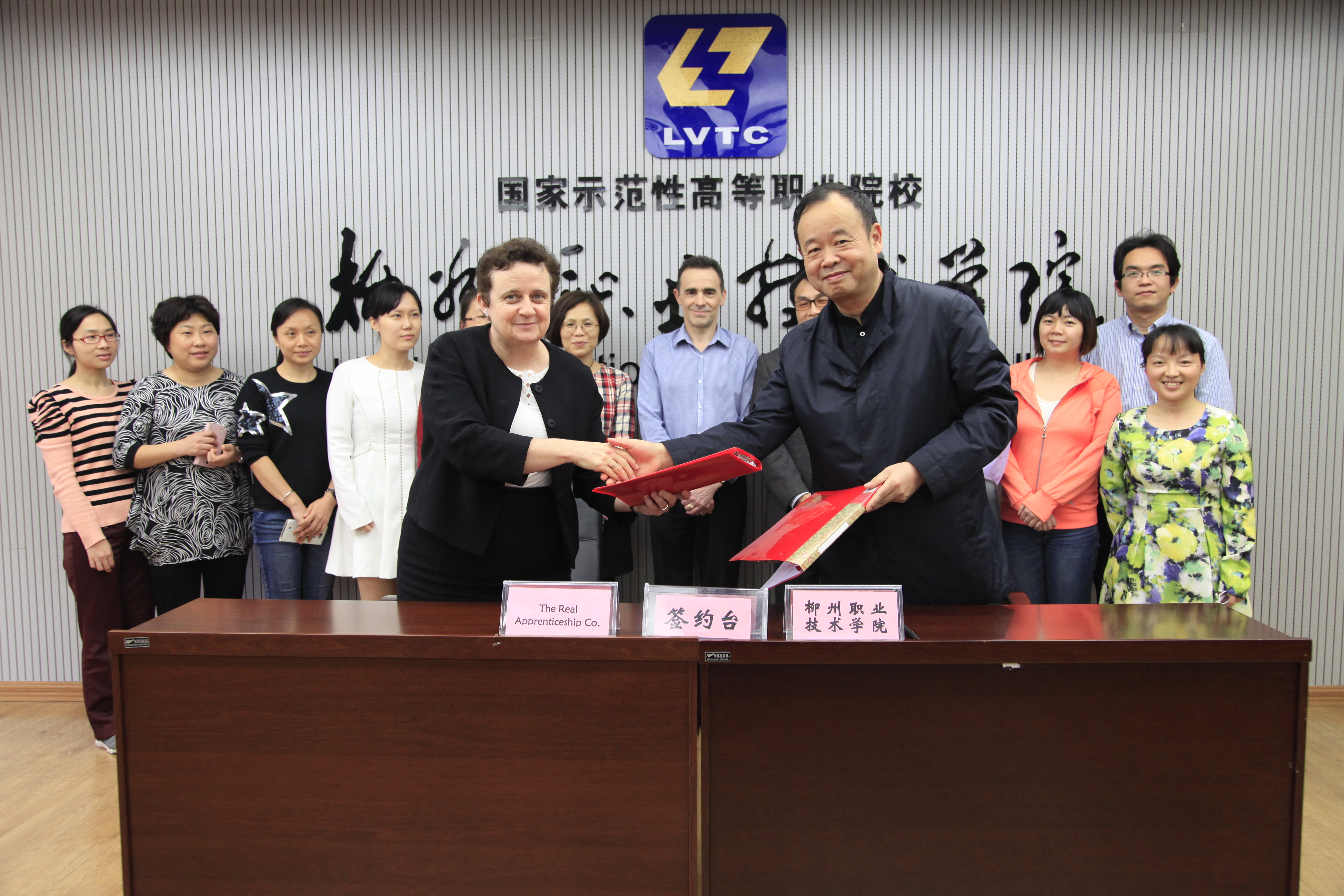 新闻网消息(通讯员 国际交流处/赵萃 摄影/宣传部 邱禹)继2014年12月中旬学院正式与英国瑞尔学徒公司签署《中英物流业现代学徒制项目合作备忘录》后,时隔三月,经过多次细节比对研究商讨,我院与英方签订教育合作服务等级协议,率先成为高职“现代学徒制”项目的柳州市试点、广西试点,这标志着《柳州市职业教育国际化行动计划》稳步推进。
