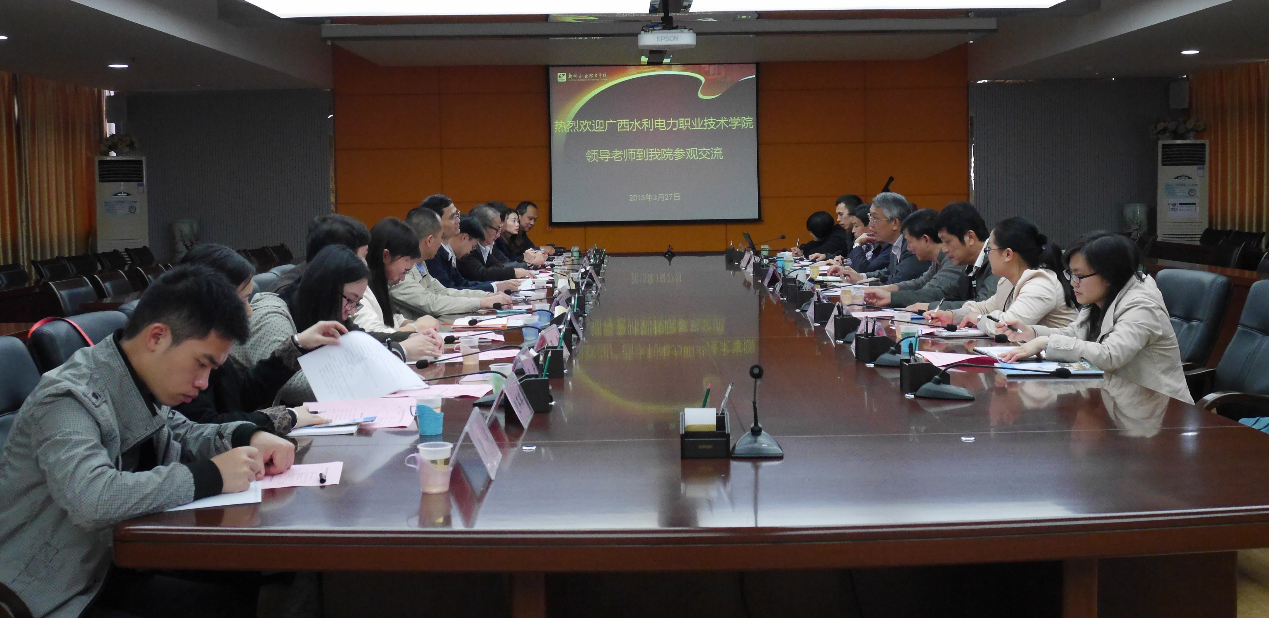 新闻网消息(文/胡慕贤 图/宣传部 朱敬民、李晓枫)3月27日下午,广西水利电力职业技术学院副院万玉文一行14人到我院访问交流。学院副院长杨毅率学生工作处、机电工程系、财经与物流管理系、心理健康教学团队等部门负责人在行政楼300会议室与到访客人进行了座谈, 就学生教育管理、奖助贷管理、心理健康教育、团学活动、学生工作队伍建设等等问题进行了沟通交流。