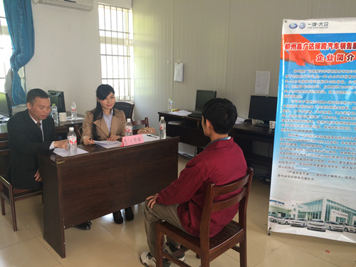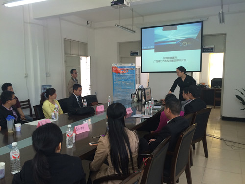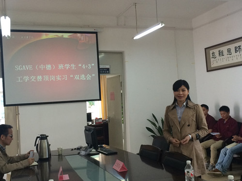 4月14日上午,在行健楼三楼汽车工程系会议室举行了一场别样的人才争夺战,来自柳州市盛铭汽车贸易有限公司、柳州市合隆汽车销售服务有限公司、柳州建润汽车销售服务有限公司、柳州鑫广达博腾汽车销售服务有限公司的行政总监、服务总监,纷纷前来汽车工程系挑选人才,目标——SGAVE(中德班)2013级的30名学生。参会的还有SGAVE项目的4位老师。
