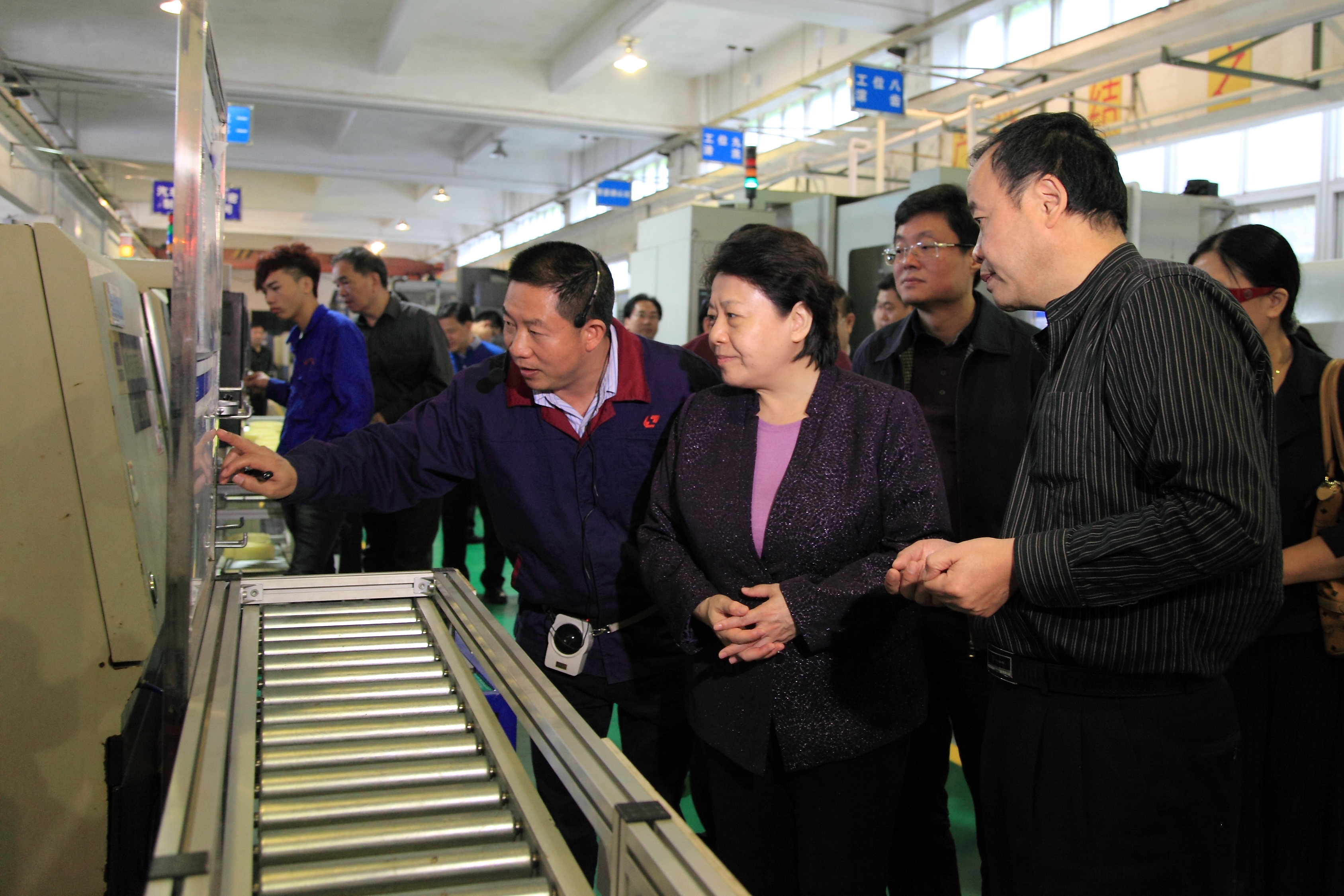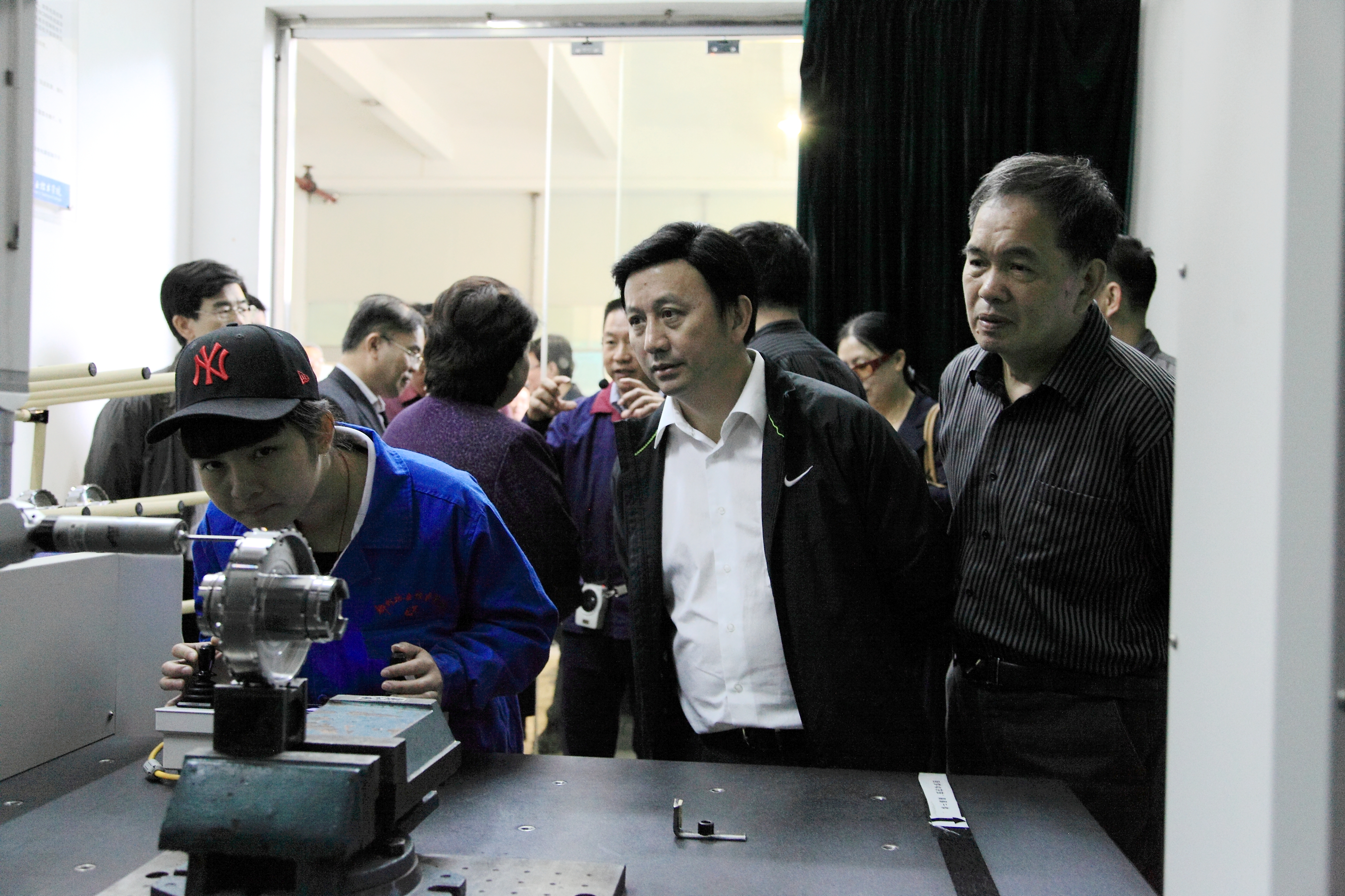 李康副主席一行先到天工楼一楼参观了采用德国质量制造标准建设的柳州市千万元实训基地项目--采埃孚汽车零部件精密制造教学工厂。学生们在这里学习到从毛坯到成品的自动生产全过程,包括产品质量控制的所有环节。在三坐标仪检测室,李康副主席看到了我院2010年从德国购进的、专门用于检测机械零件合格与否的精密仪器——国际知名品牌“蔡司”测量仪,其测量精度能达到人头发的20-30分之一。据悉,柳州的许多企业都拿自己的产品来这里检测。在老师的指导下,学生们也能操纵仪器进行检测。