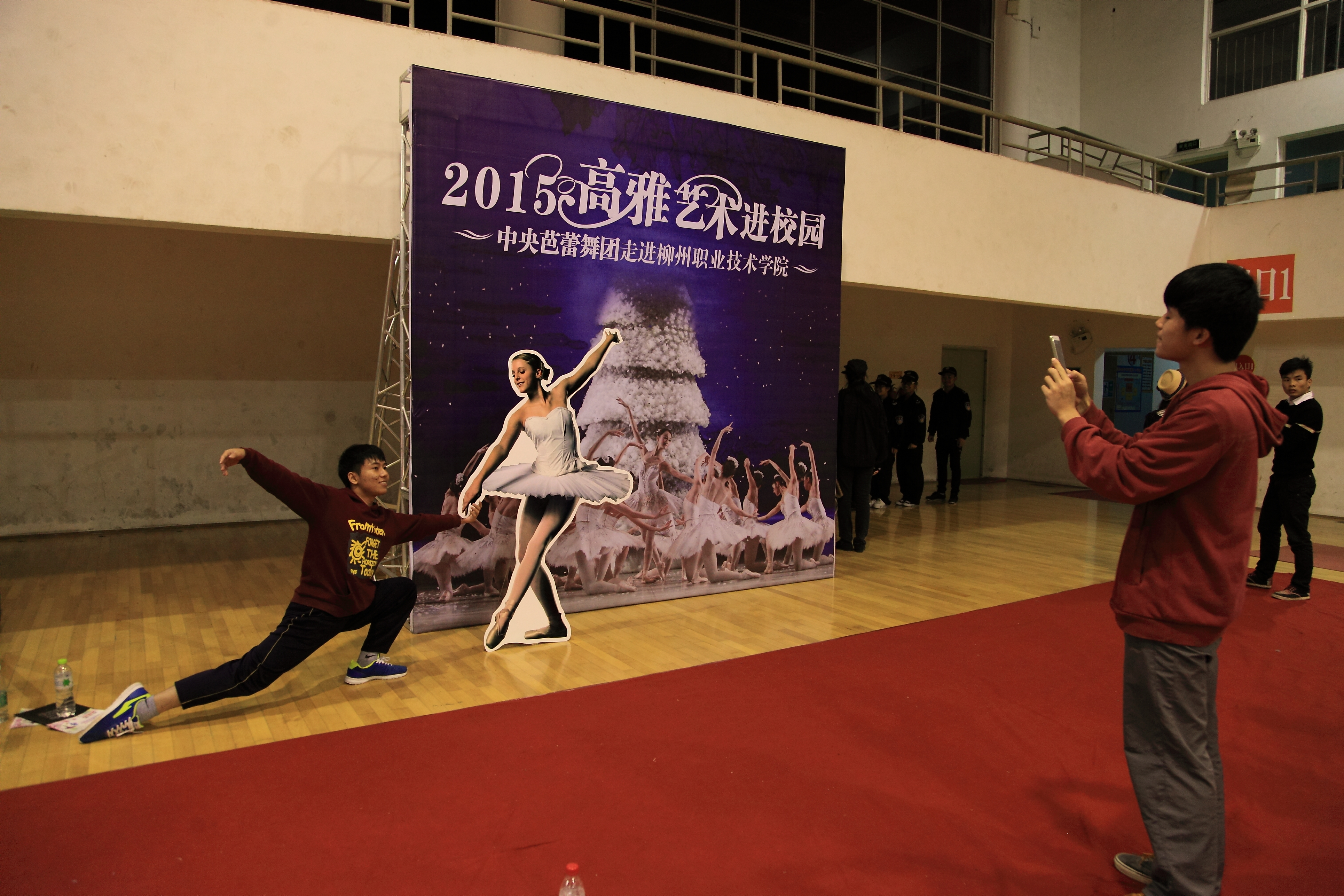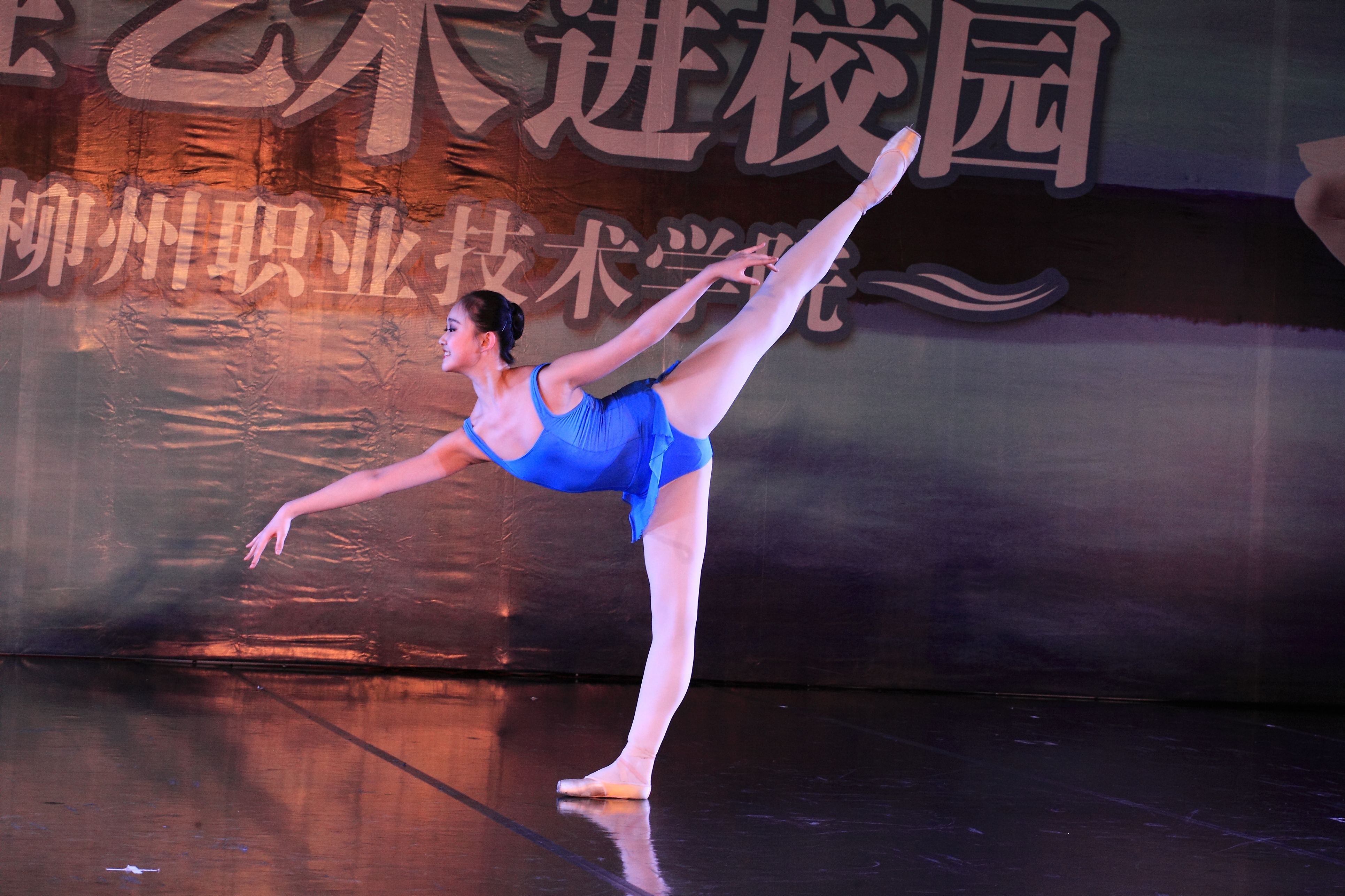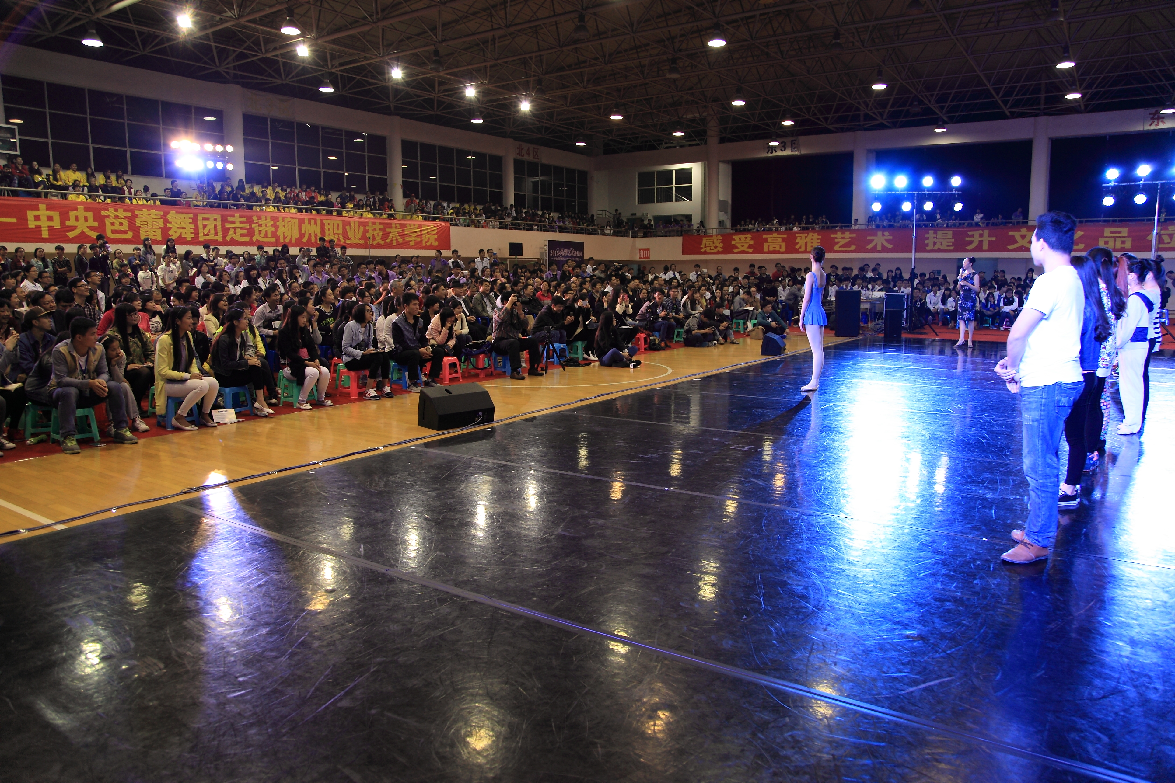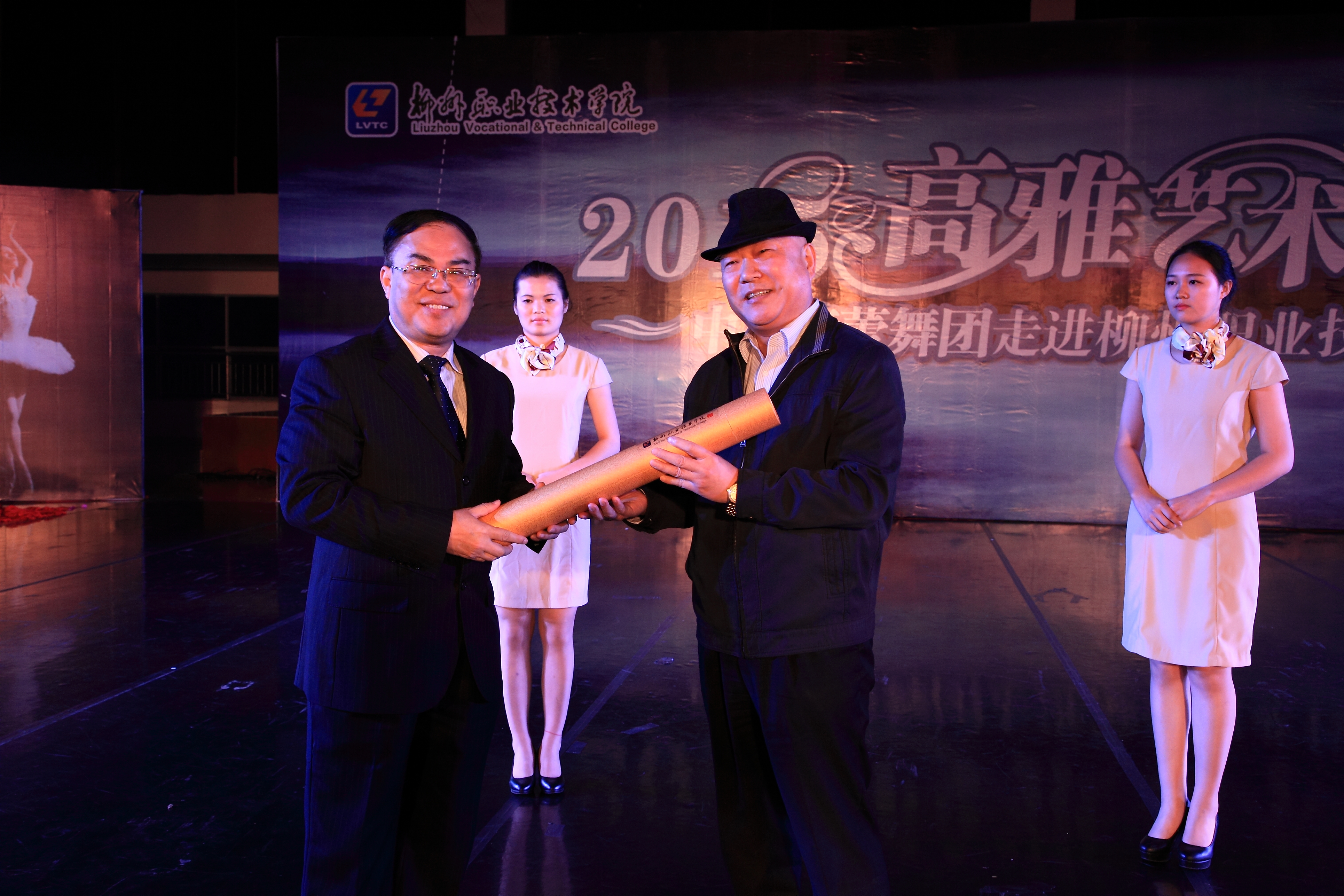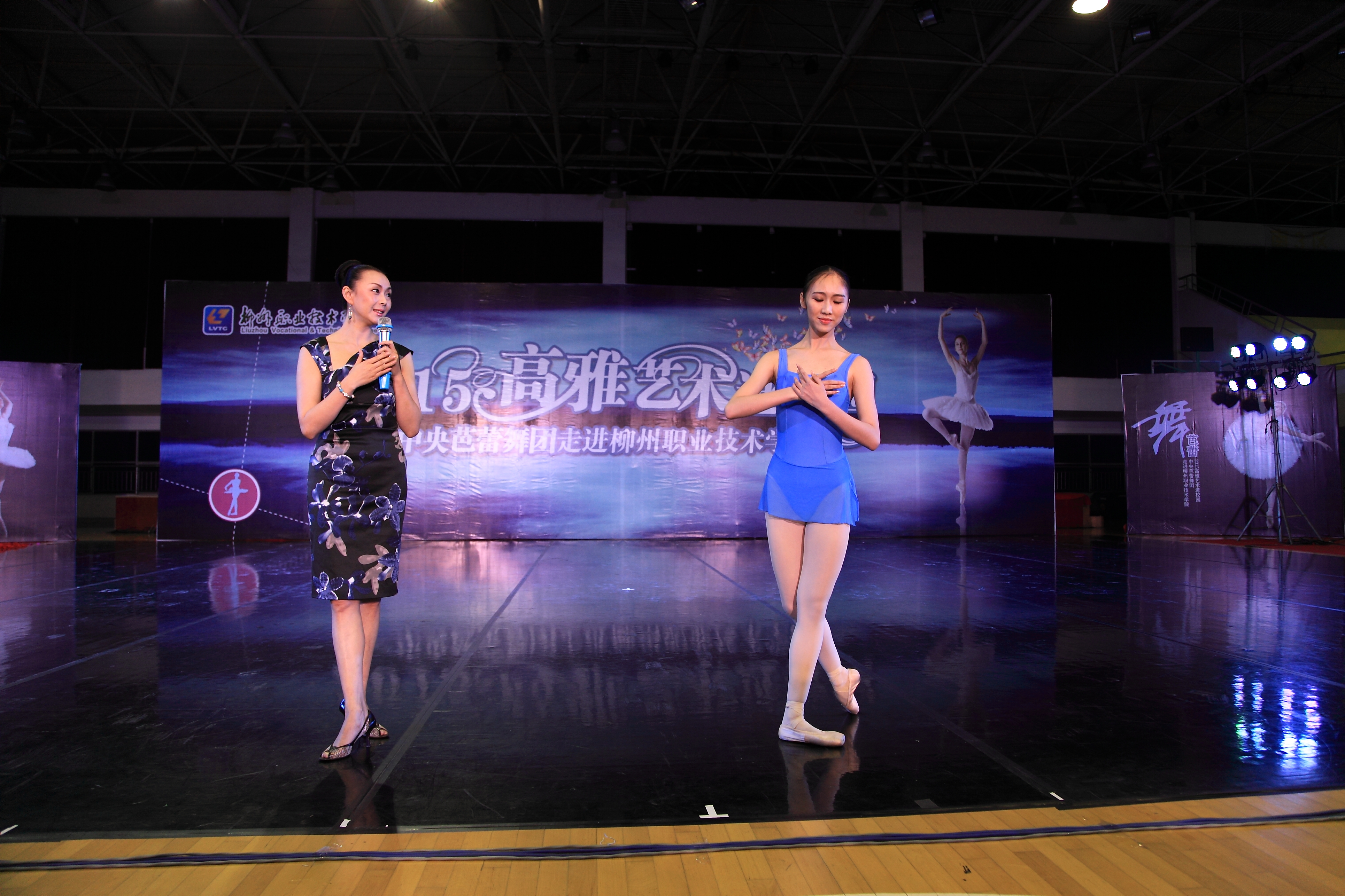 当晚4名少女简短的开场舞后,我院党委书记朱伟才讲话,欢迎远道而来的中央芭蕾舞团的演员们。该团是我国最高级别的艺术团体,多年来,致力于传承和传播高雅的艺术和文化,奠定了自身在行业中的地位。作为全国100所、广西仅2所的柳职院,在发展过程中,也以严谨的治学精神和办学理念在自己独树一帜的办学道路上执着追求,同样奠定了自己在全区乃至全国的地位。此次高雅艺术进校园活动,是艺术与教育的一次握手,将在我院校园文化史上留下深刻的印记,祝愿大家度过一个美好的夜晚!