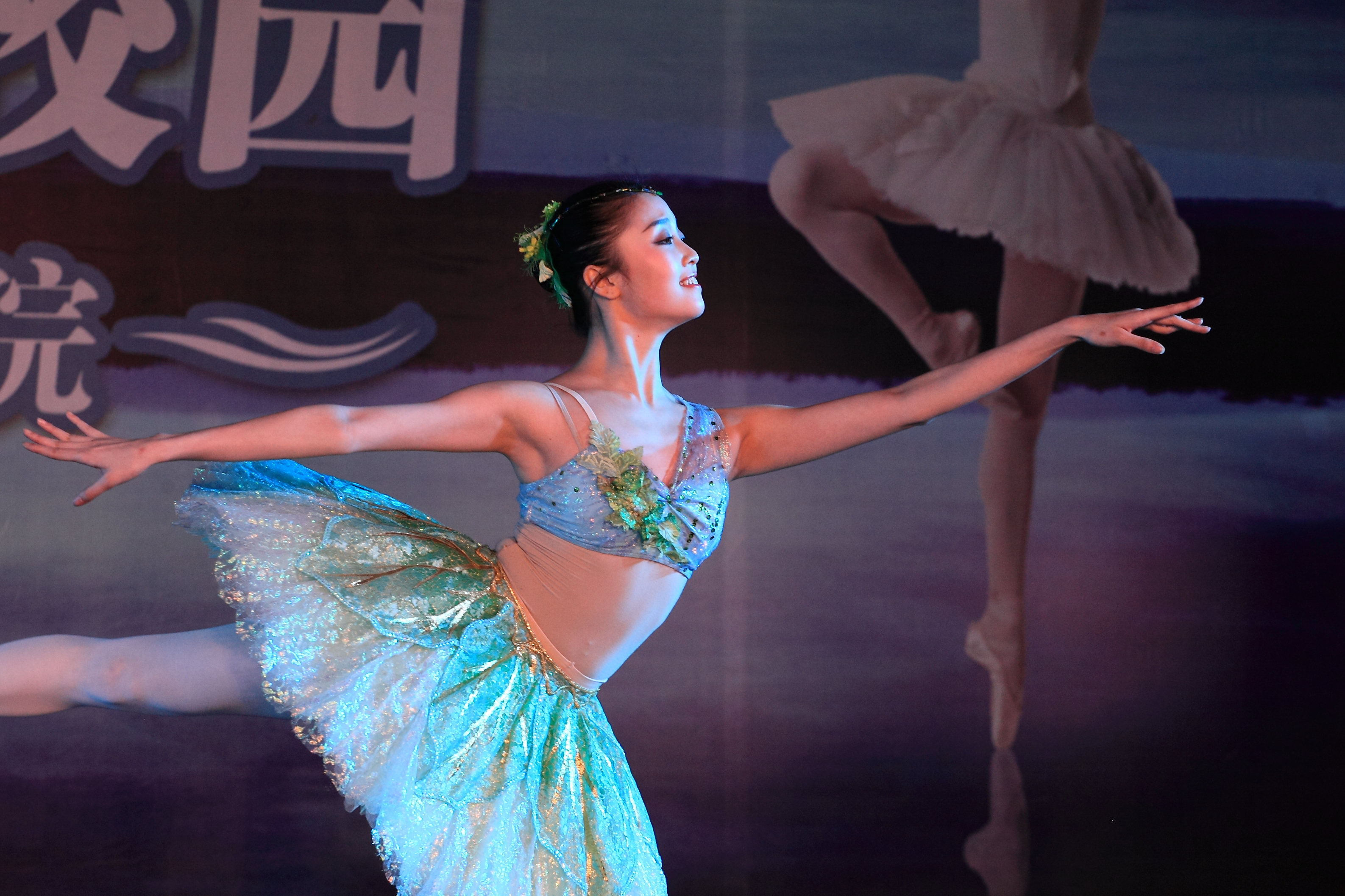 15名学生上场学芭蕾环节让全场充满了欢乐