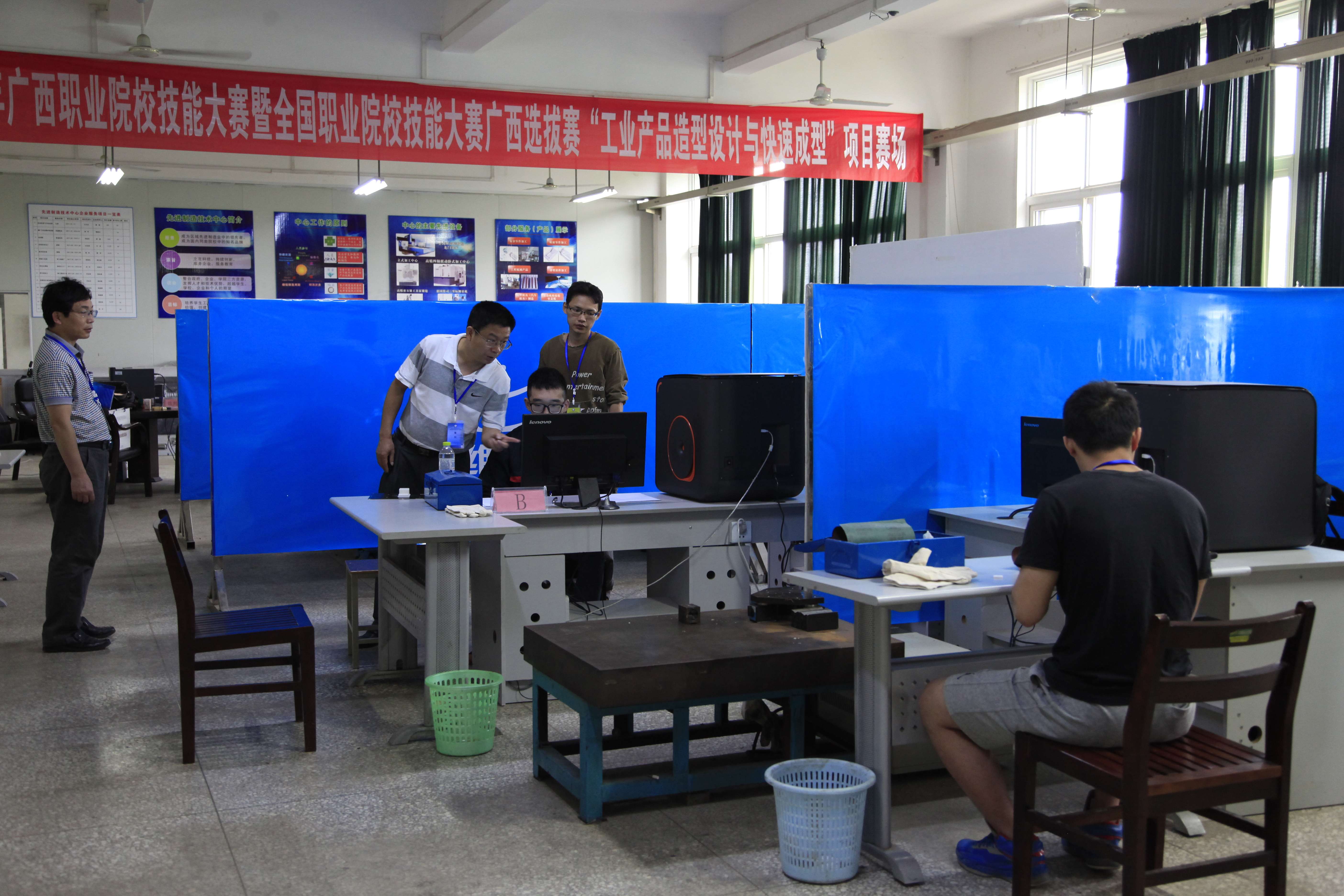 当许多人对3D打印的概念还比较陌生的时候,在我院天工楼三楼先进数字化设计与制造中心,包括我院在内的来自6个高职院校的6支参赛队共18名队员在这里展开工业产品造型设计与快速成型赛项的激烈角逐,而他们所用到的比赛设备,就是由我院提供的3台3D打印机。比赛分“产品创意设计”、“产品平面设计”、“快速成型加工”三部分内容,在“快速成型加工”阶段,选手们要用3D打印机将之前设计的产品现场打印出来,这对于选手们的产品设计能力无疑是极具挑战性的。