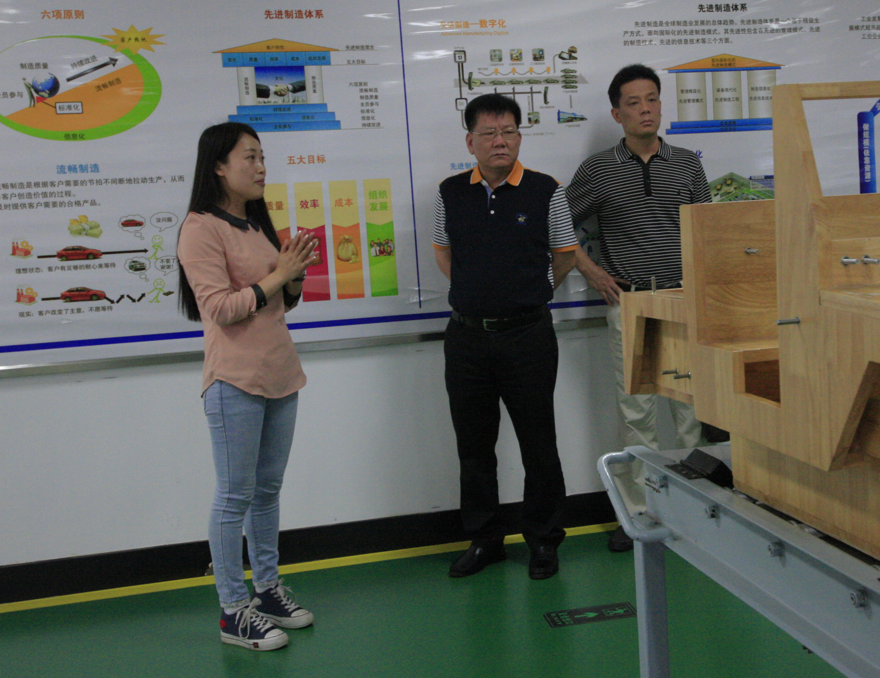 接着,检查组到竞择楼参观先进制造实训工厂,实训室指导教师从精益生产知识、信息工程知识、现代工厂技术、职业能力与素养训练四方面实训内容,介绍了先进制造实训工厂的情况,并介绍结合训练开展安全教育的情况,让检查组了解了实训教师是如何把安全生产的要点融入到学生在生产线上的实训中,从而提高学生的安全意识和安全操作能力。