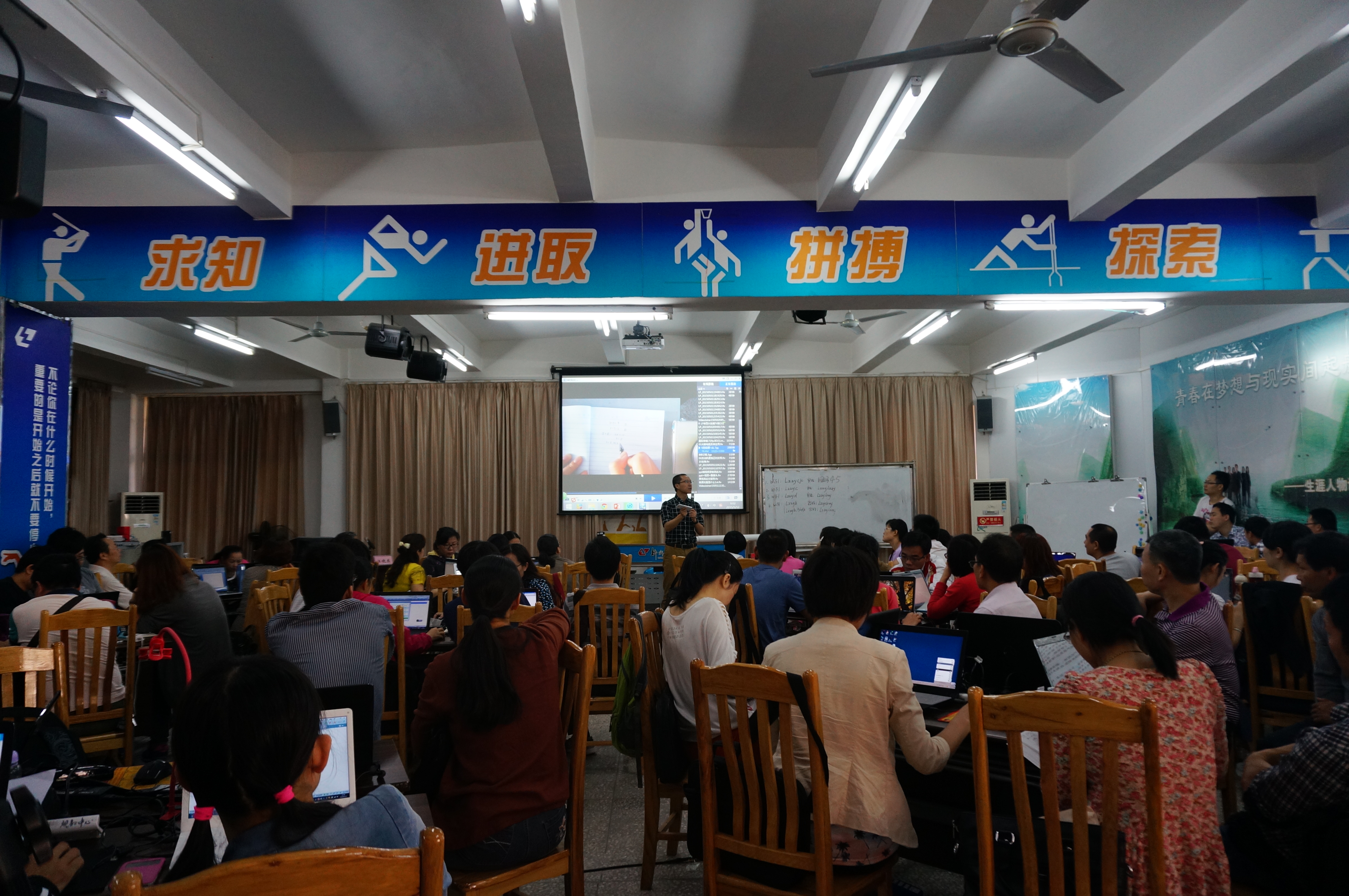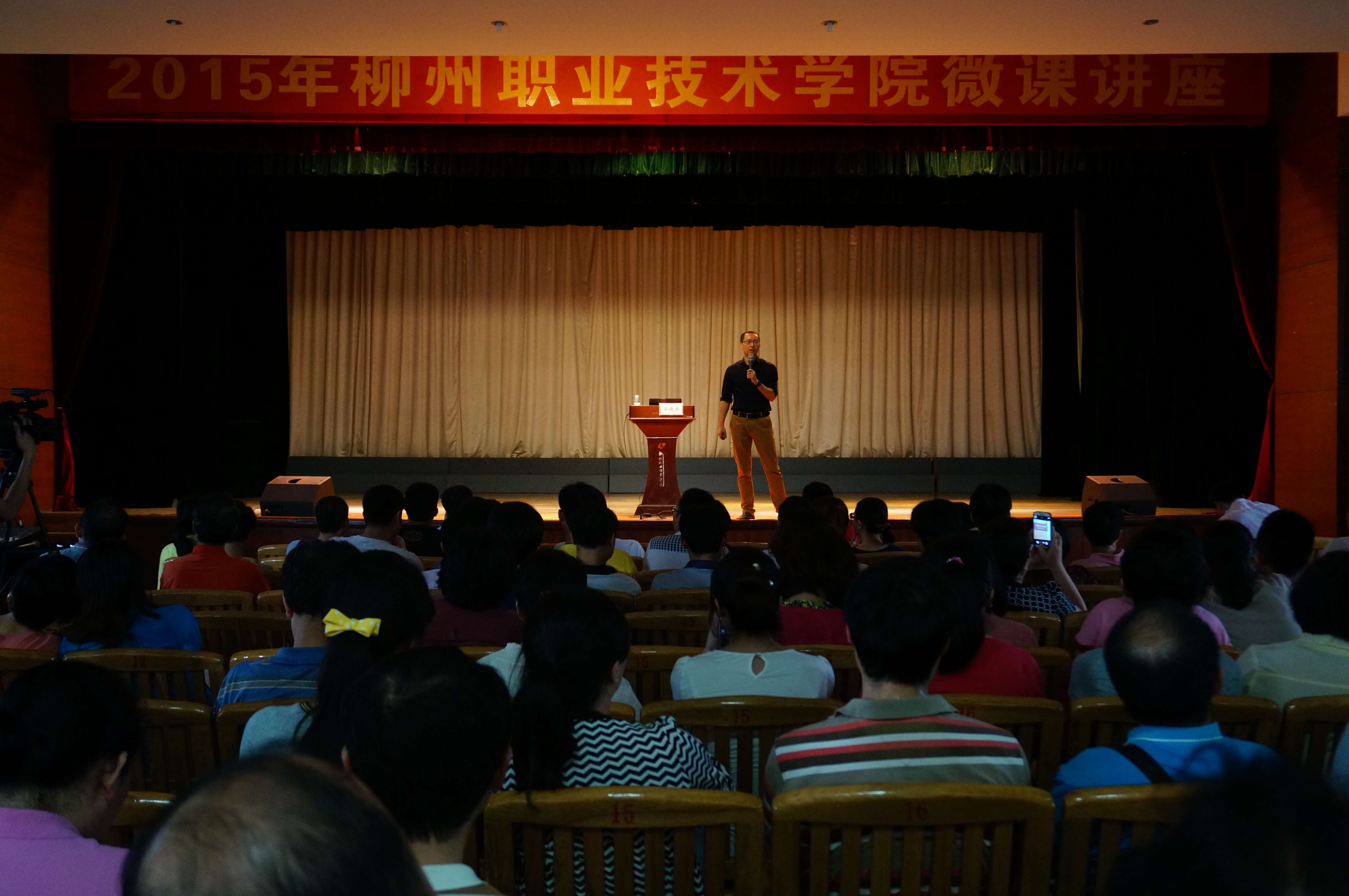 培训分两部分:11日下午,在南校区礼堂,为全院专任教师包括兼职教师进行微课讲座,学院副院长林若森代表学院致欢迎词,学院中层干部、教务处、教育技术中心人员以及机电工程系机电一体化教育专业本科班的学生聆听讲座。讲座内容包括微课的基本概念、微课与翻转课堂的关系,优秀微课作品展示等。汪老师深入浅出、富于激情的讲演博得台下阵阵掌声! -