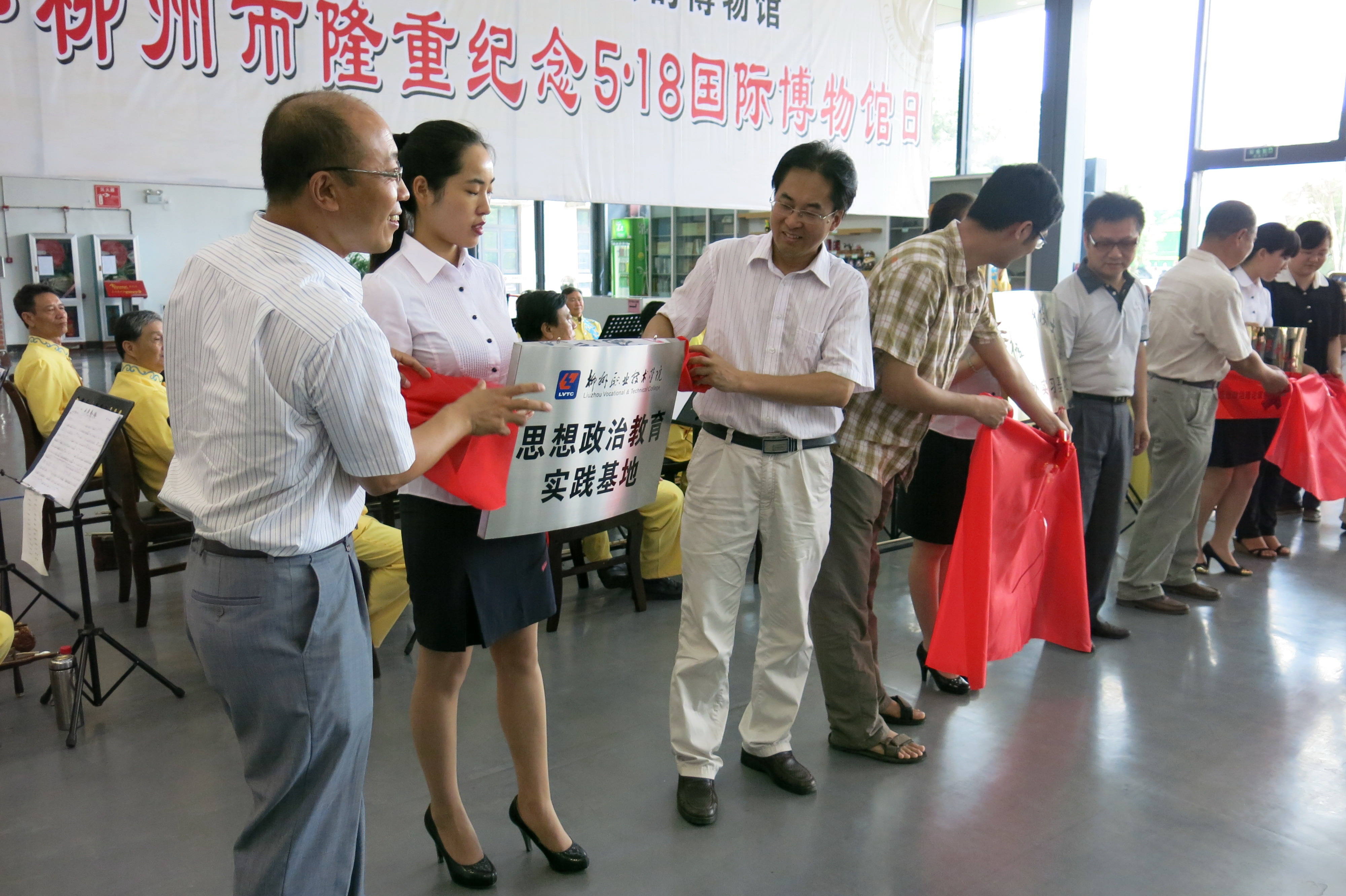 新闻网消息(通讯员/基础部 黄志卫)为了贯彻落实上级及学院系列重要文件精神,进一步加强和改进我院学生思想政治教育工作,增强思政课教学的实效性,提高学生的实践能力、创新能力和就业能力,近日,我院与柳州市工业博物馆签订协议,在该馆建设柳州职业技术学院大学生思想政治教育实践教学基地。5月18日上午,揭牌仪式在市博物馆大厅举行,我院党委副书记阳旭和思想政治理论课教学部主任姜献生出席仪式。