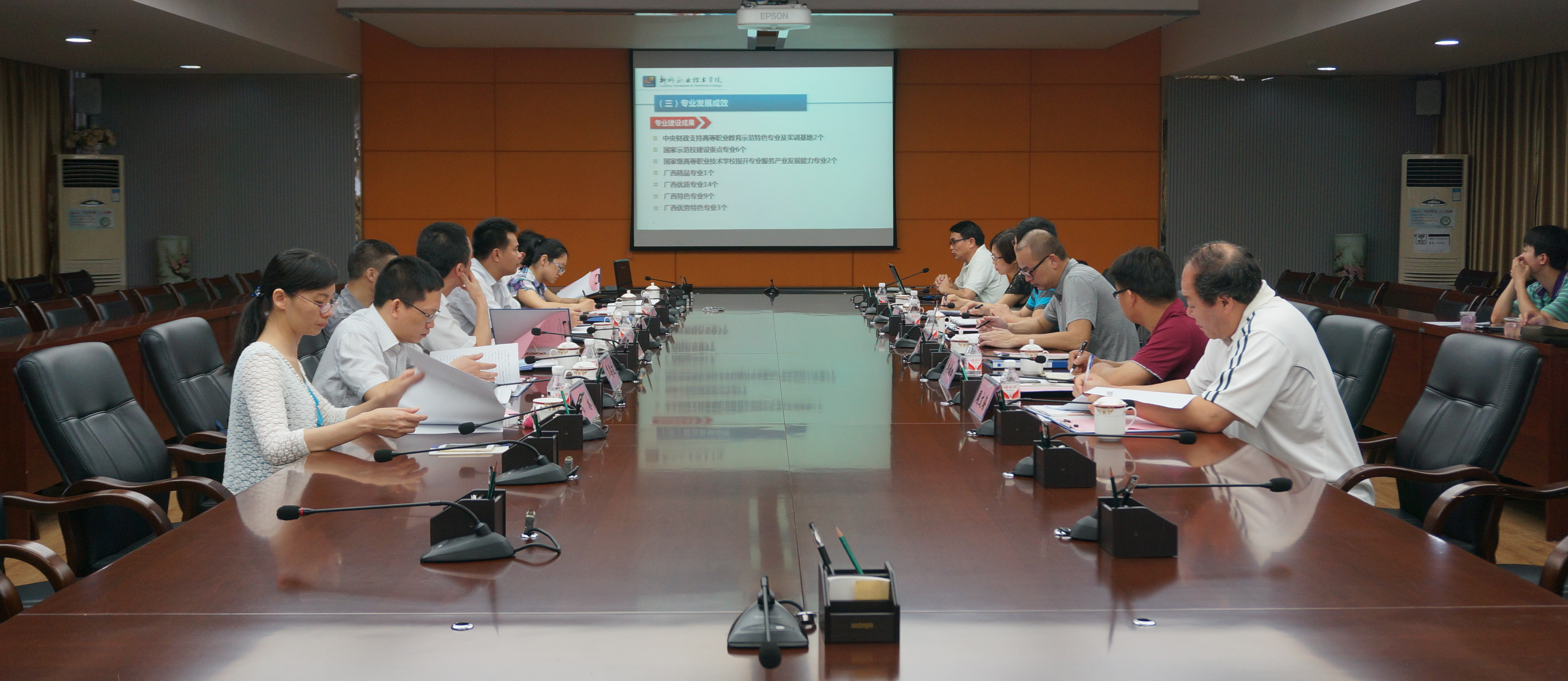 新闻网消息(通讯员/教务处 刘柳 摄影/宣传部 朱敬民、蒙俊江)5月22日上午,2015年柳州市教育局专业建设暨布局结构调整调研组专家一行5人到我院调研,副院长林若森、瞿凡,总会计师冉福松,各系部正副主任参加了调研会。