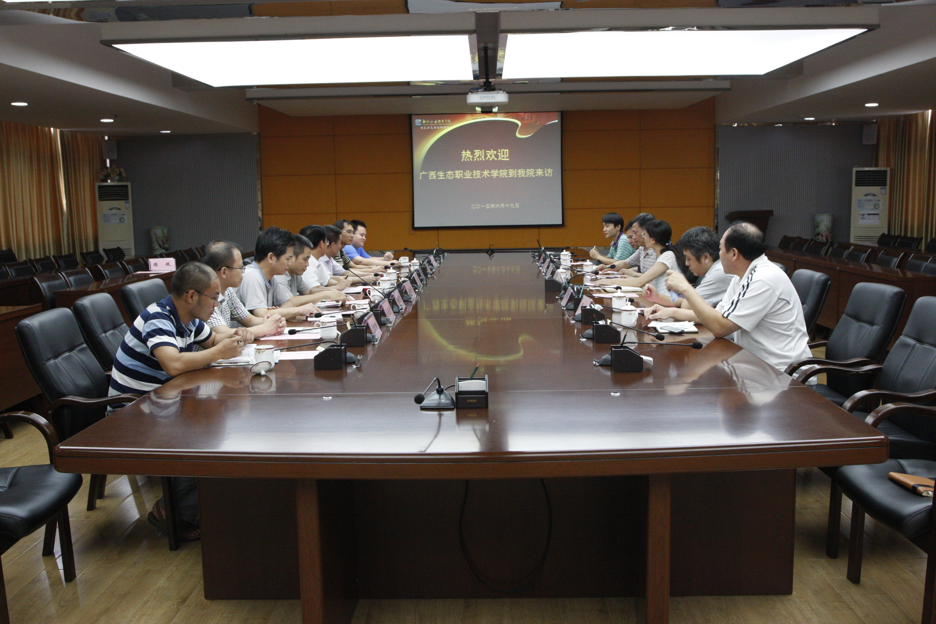 新闻网消息(通讯员/教务与实训管理处 刘晶)6月19日,由广西生态职业技术学院教务处处长苏付保及该校教务处、汽车与信息工程系、高教研究室、生态工程系、经济贸易系、建筑工程系、园林系、艺术系、旅游系等相关部门负责人组成的参访团到我院交流。学院教务与实训管理处、继续教育中心(校企合作处)、机电工程系、汽车工程系、电子信息工程系等部门相关人员,重点就学院校企合作共建实训基地、实训基地规划化管理、实训室建设等等方面工作与来宾进行了座谈交流。