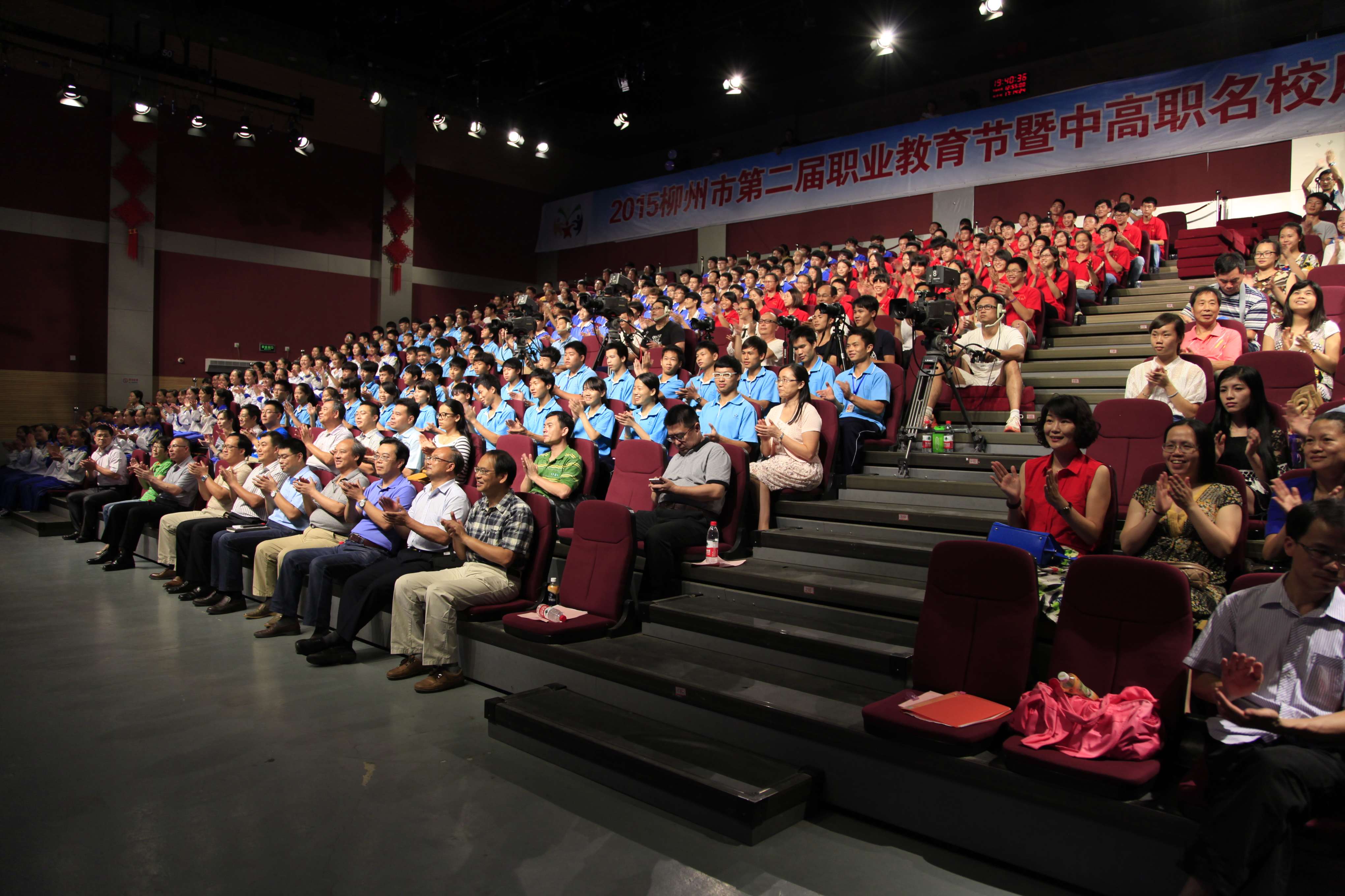 柳州市第二届职业教育节由柳州市教育局主办、柳州市广播电视台承办,包括全市高中职学校教育成果展、招生推介,招生就业政策咨询等内容。6月24日晚七点三十分,做为柳州市第二届职业教育节的重要环节之一,2015柳州市第二届职业教育节暨中高职名校风采展演在柳州市电视台800平方米演播大厅隆重上演。柳州市教育局副局长潘旭阳、柳州电视台副台长董世良、14所中高职学校领导及师生代表出席活动。当晚共有10所中高职学校表演节目,大家八仙过海,各显神通,为观众们献上了一场展现职教风采的视听盛宴。