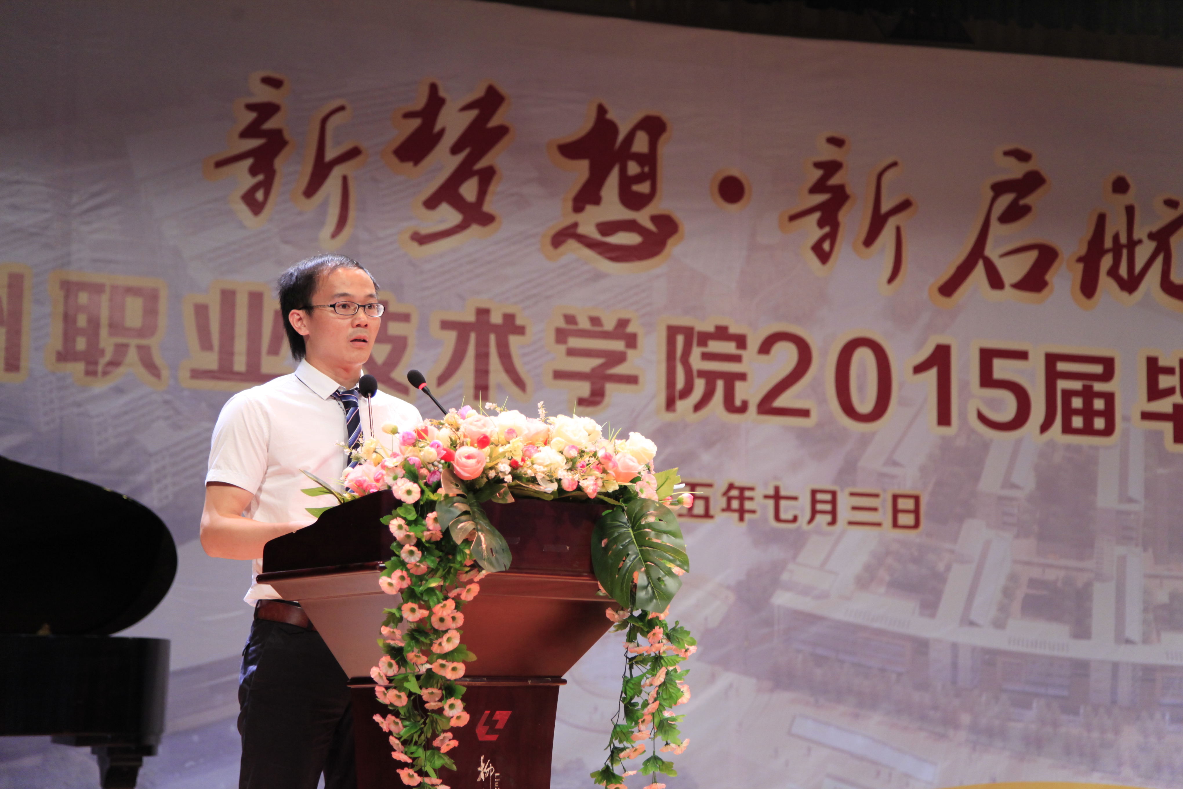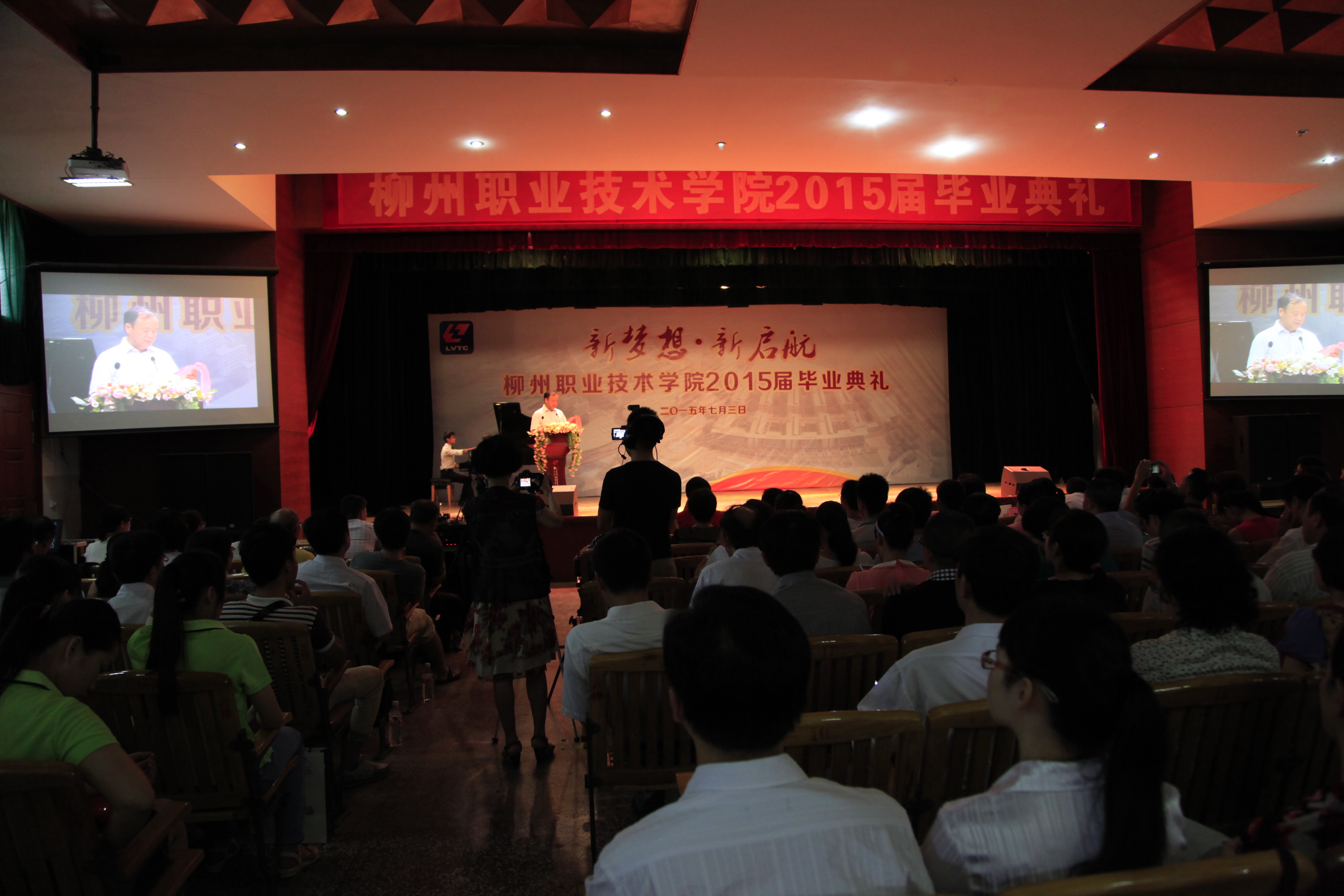 仪式播放了泪点密布的MV《学弟学妹对你说》,以毕业生生活、学习与工作的多个片段,对过去的三年进行了深情回眸,一股离情别绪顿时弥漫开来;接着,党委书记朱伟才为35名学生颁发“2015届广西壮族自治区优秀毕业生”证书;之后,毕业生代表情真意切地抒发了内心的不舍、留恋与感恩。感恩父母的爱,感恩老师的谆谆教诲,感恩同学的支持与帮助。感谢柳职“志当高,学当勤,能必强,技必精”的校训,让他们顺利得到企业和社会的认可,表示将谨记“踏踏实实做人,认认真真做事”的柳职精神,到社会去直面风浪,在各自的工作岗位上去建功立业。