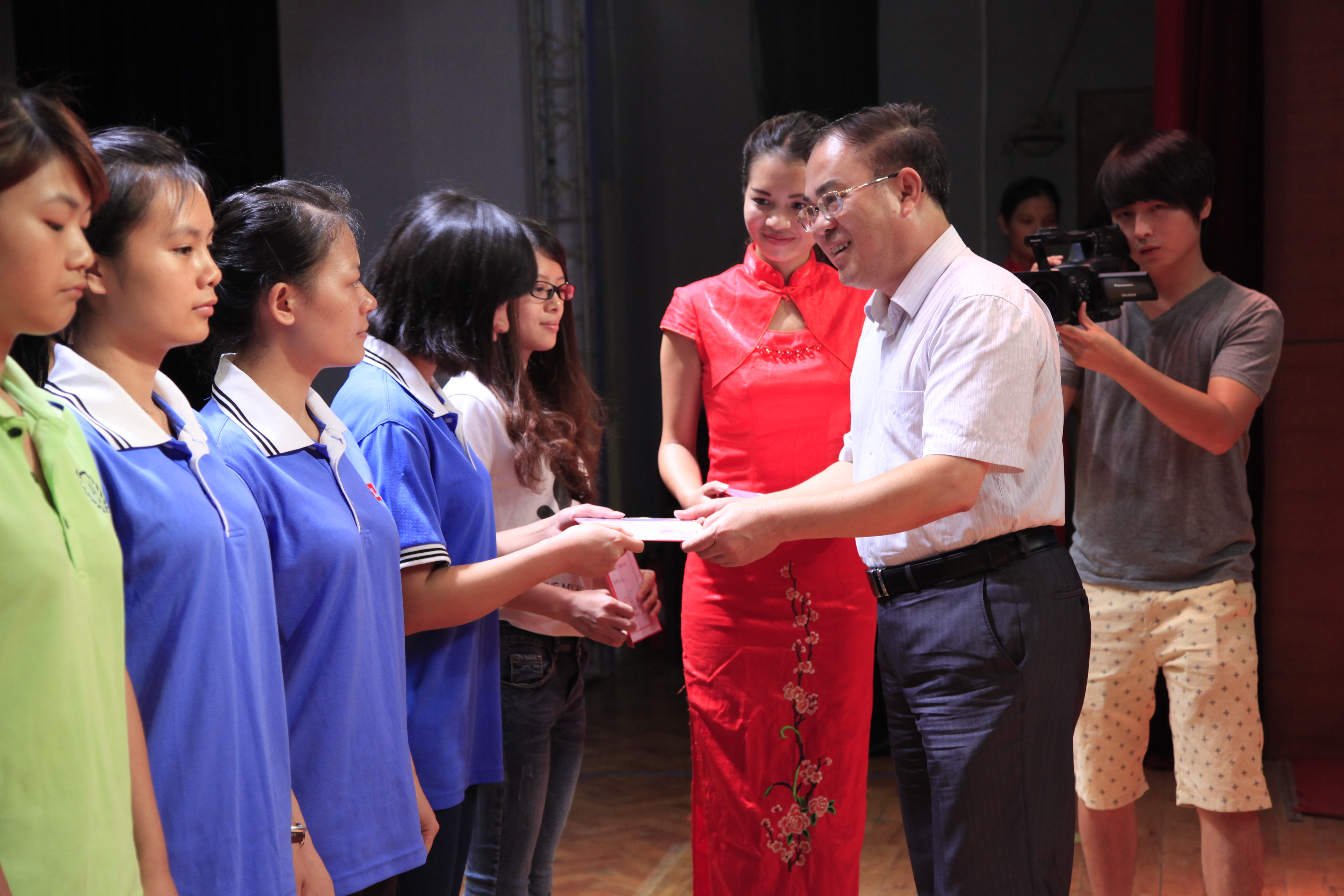 院党委书记朱伟才为获得“自治区优秀毕业生”荣誉的毕业生颁发证书