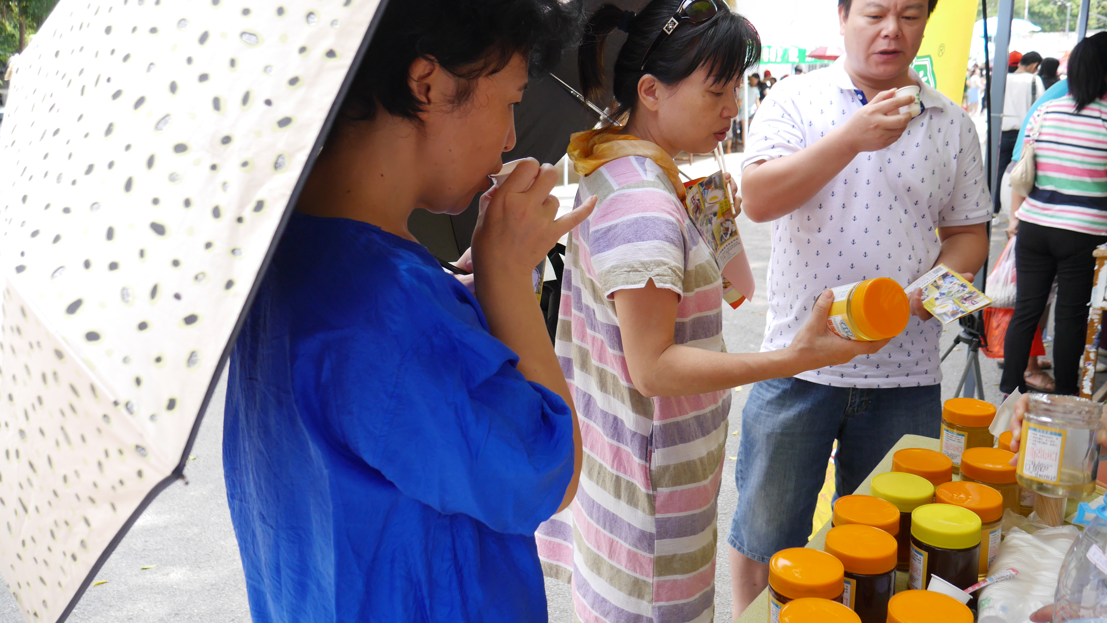 在我院A区举行的绿色农产品品鉴会,吸引众多消费者前来光顾。