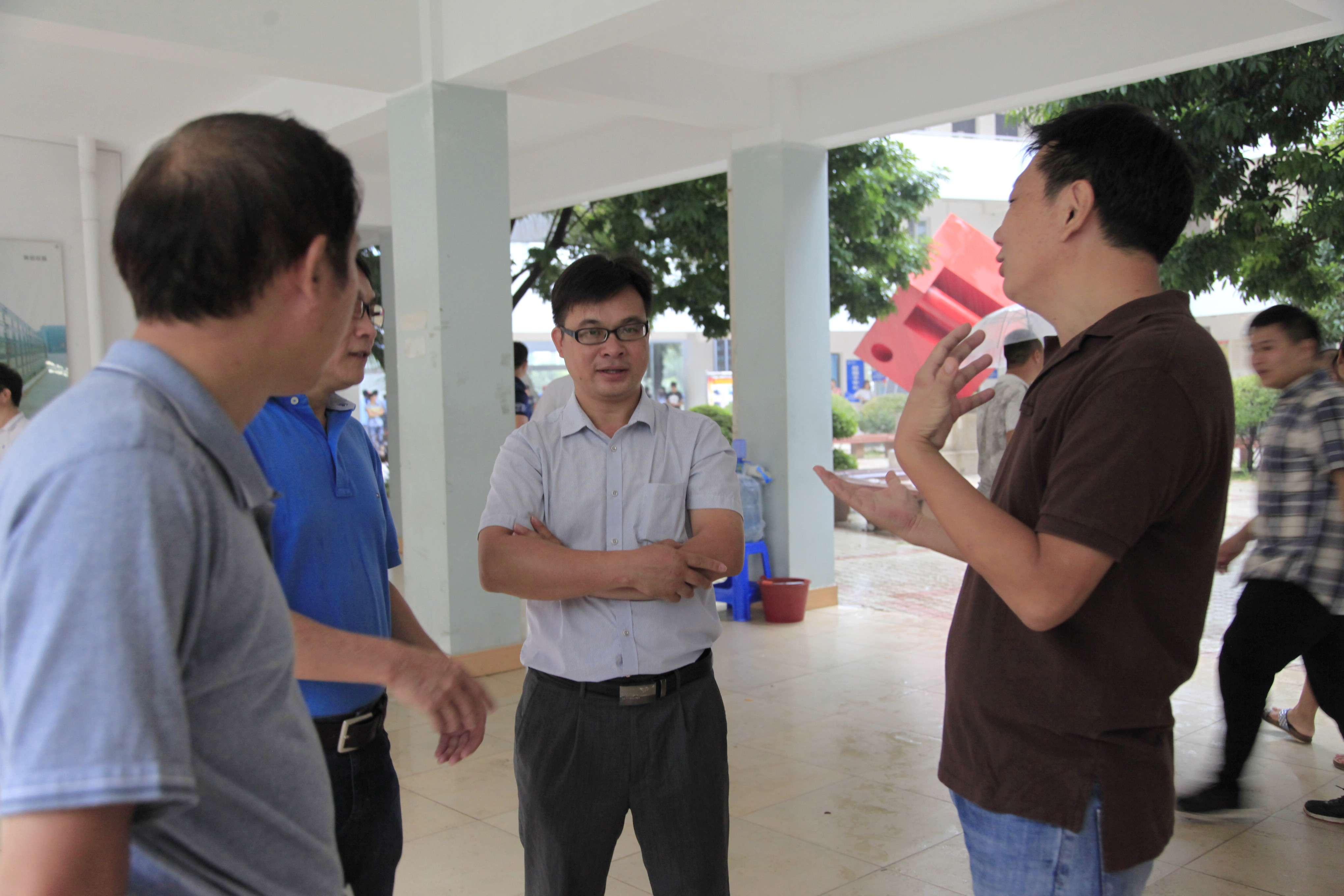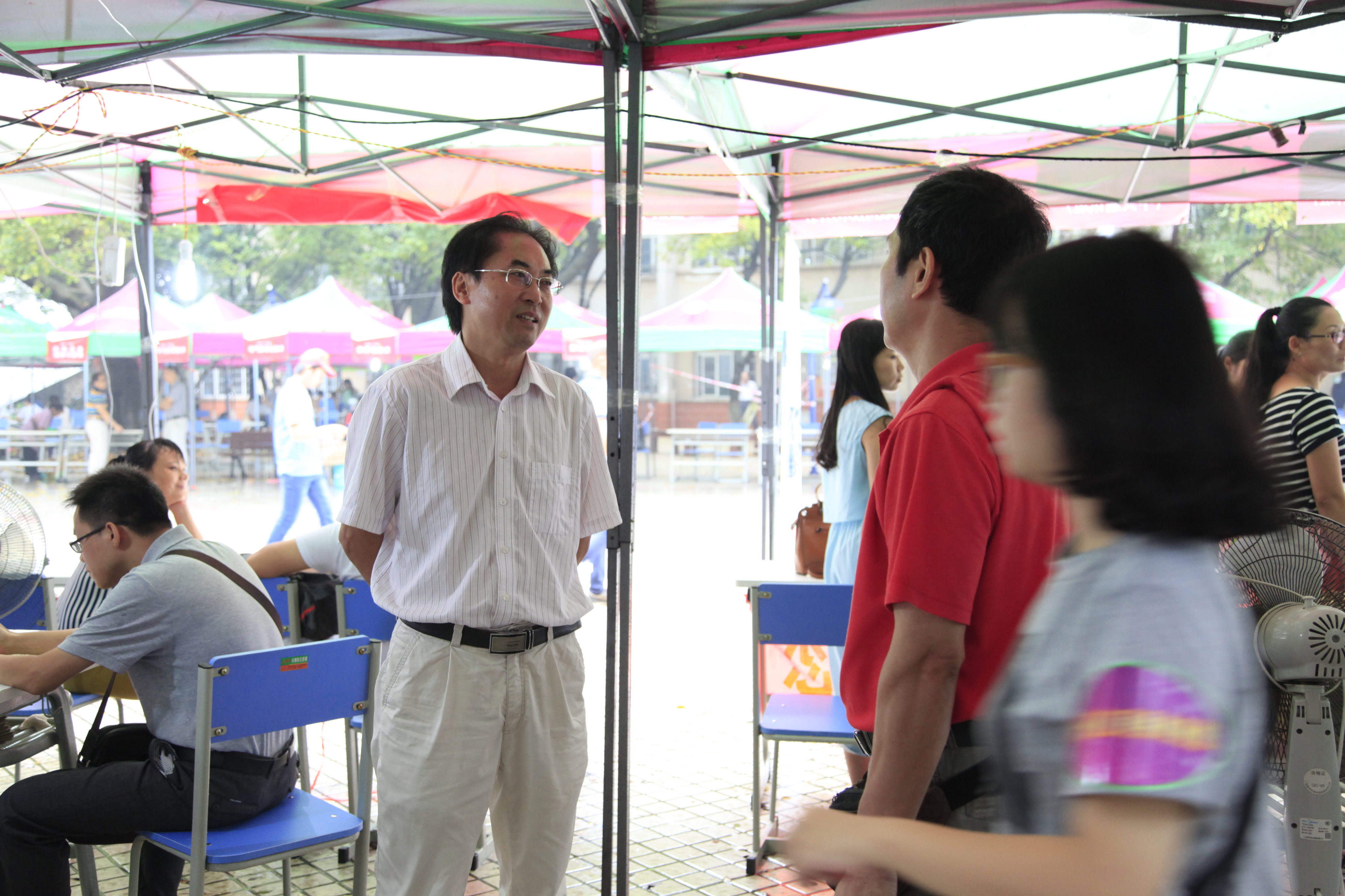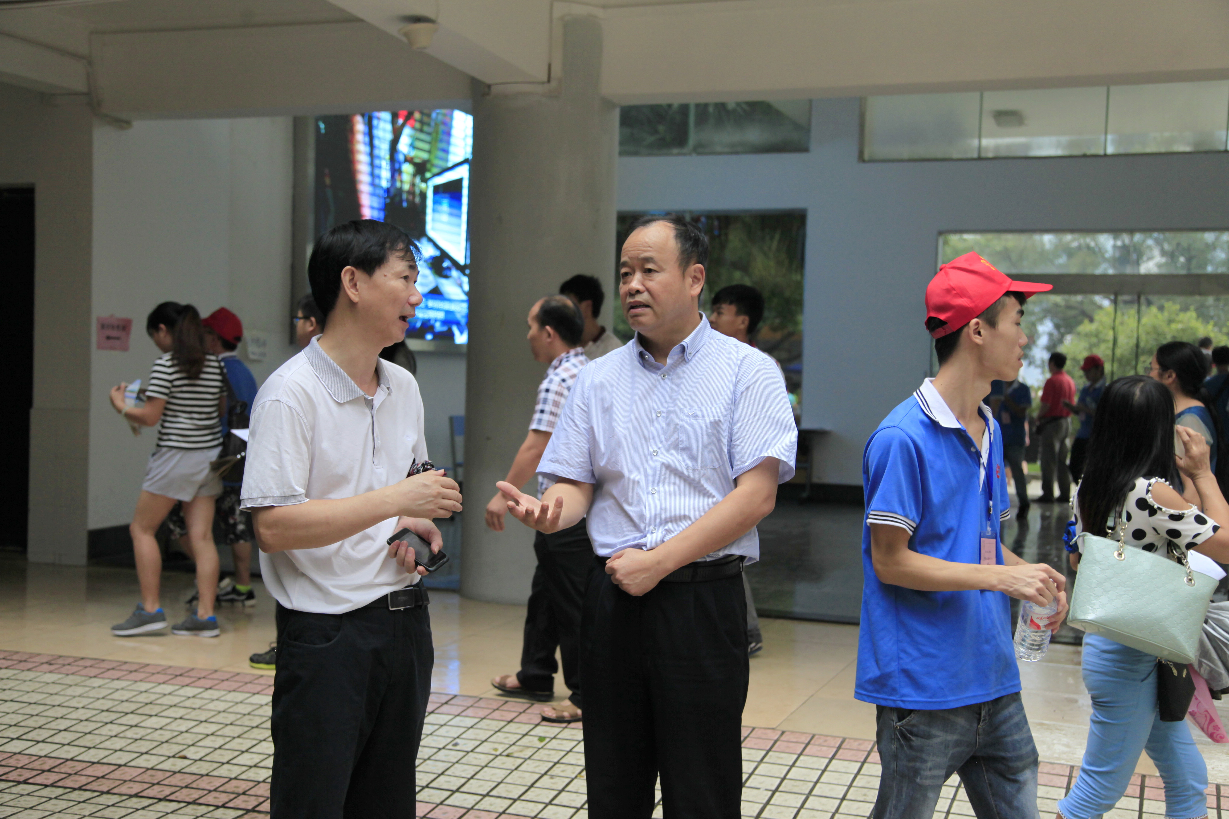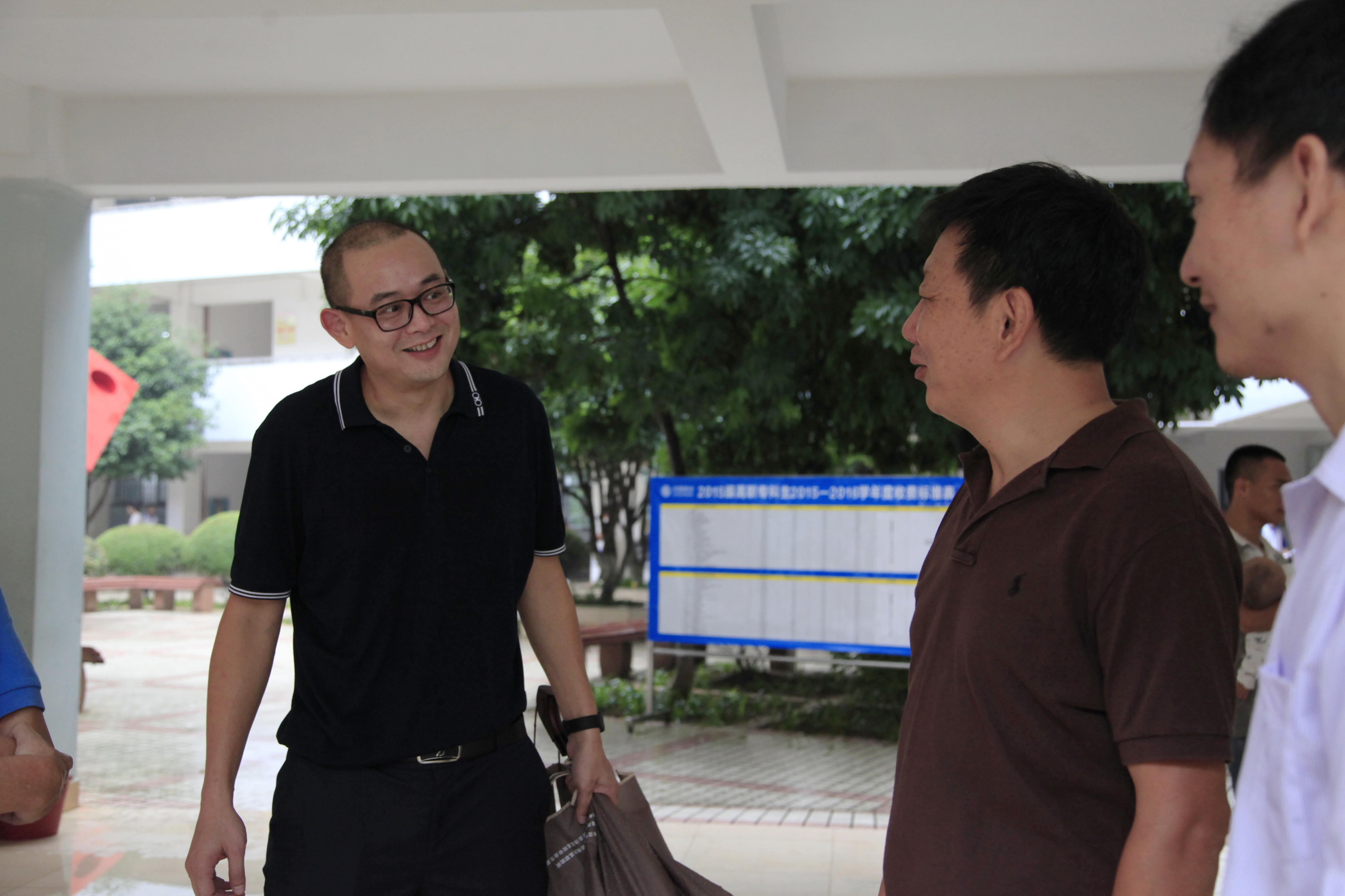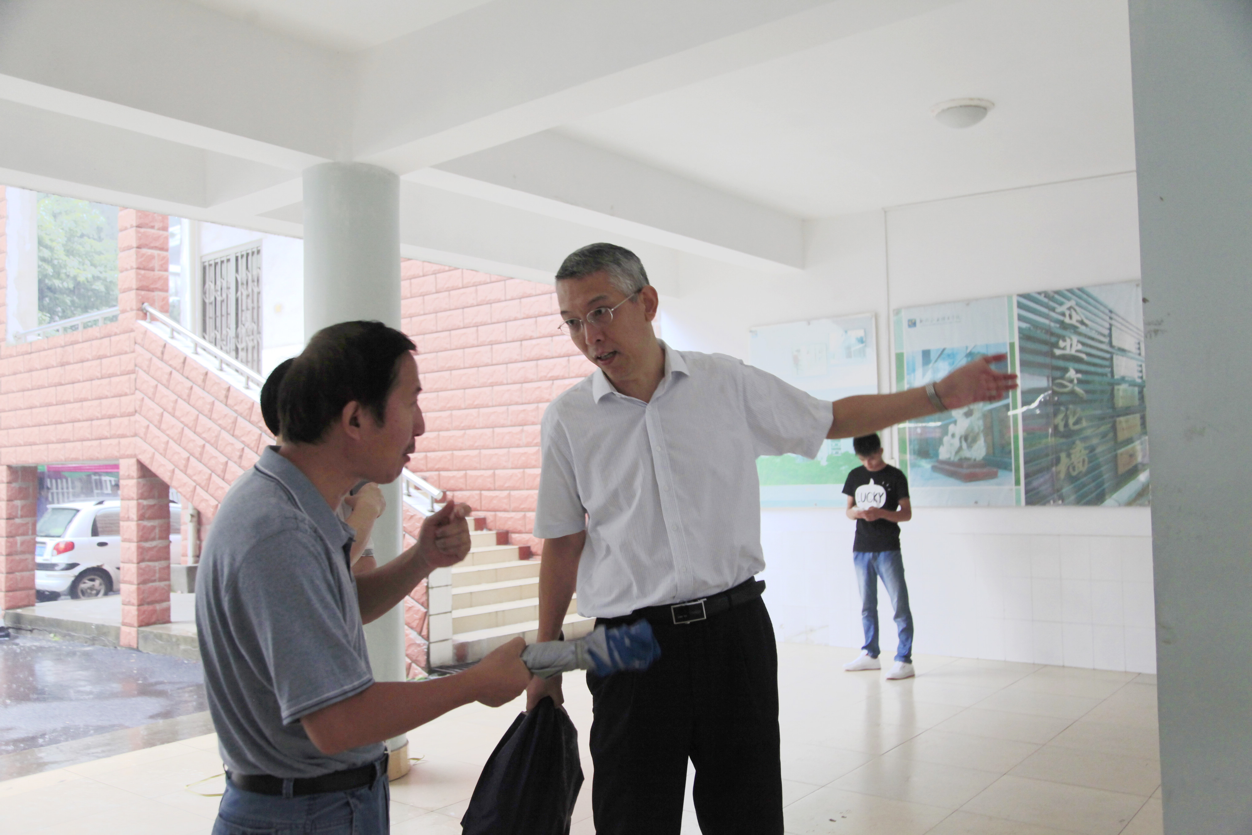 12日上午9:40,骤雨初歇。院长石令明来到迎新现场,询问新生的报到进展情况,强调迎新工作要考虑周全,做好预案,以应付难以预料的突发情况。石院长还对迎新工作提出要求。阳旭、杨毅、林若森、瞿凡、冉福松等学校领导都相继到现场指导,了解、过问新生报到情况,鼓励大家要克服恶劣天气带来的困难,尽最大努力做好迎新服务工作。 -