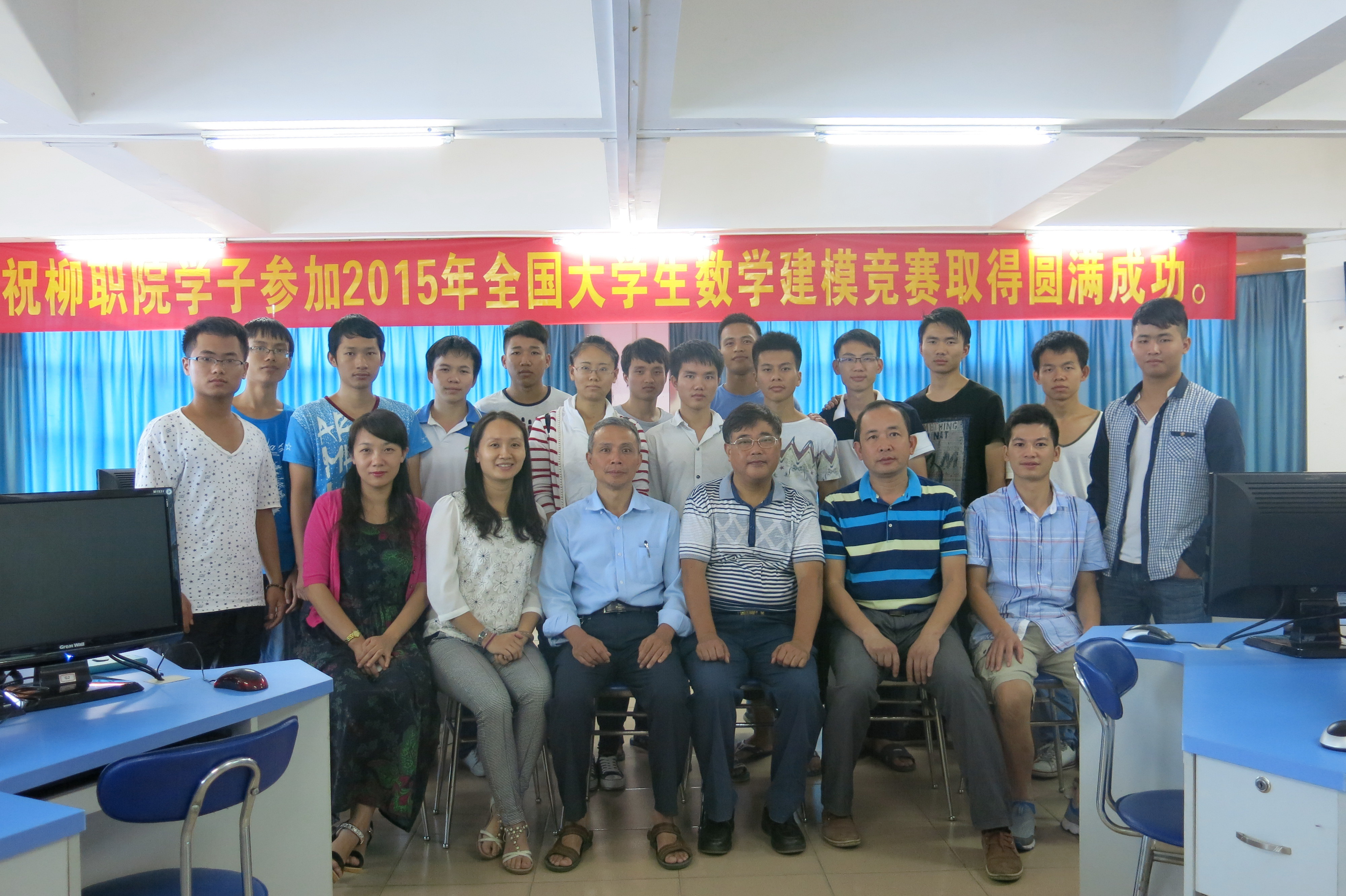 2015年全国大学生数学建模竞赛(专科组)赛题非常新颖、颇有难度,C题目是“月上柳梢头”,要求同学们根据天文学的基本知识,在适当简化的基础上,建立数学模型,分别确定“月上柳梢头”和“人约黄昏后”发生的日期与时间,同时根据已有的天文资料(如太阳和月亮在天空中的位置、日出日没时刻、月出月没时刻)验证所建模型的合理性。根据所建立的模型,分析2016年北京地区“月上柳梢头,人约黄昏后”发生的日期与时间,并判断2016年在哈尔滨、上海、广州、昆明、成都、乌鲁木齐是否能发生这一情景?D题目是“众筹筑屋规划方案设计”,要求同学们将众筹筑屋项目方案的成本与收益、容积率和增值税等信息进行全面核算,同时为了尽量满足参筹者的购买意愿,重新设计新的建设规划方案,使其投资回报率达到25%以上。各参赛队分别选择自己感兴趣的题目进行解答,虽然题目的难度有点大,但是,各队参赛选手斗志昂扬,队员之间分工明确,协同攻关,很好地发挥了团队协作精神,经过3天的日夜鏖战顺利完成了竞赛。