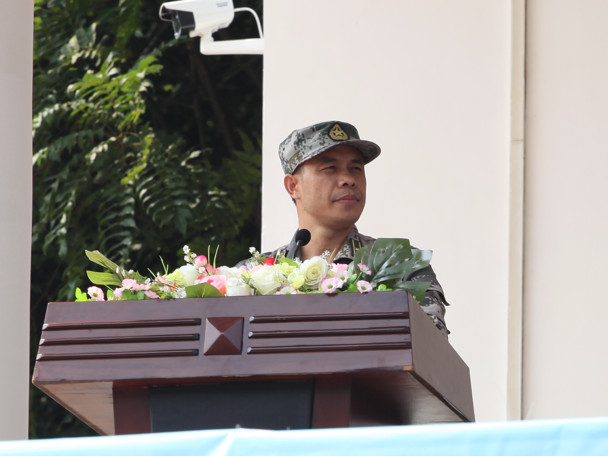 承训部队首长、第41集团军司训大队训练处处长唐建明做新生军训总动员,勉励同学们发扬军人“流血流汗不流泪,掉皮掉肉不掉队”的优良传统,学习军人的优秀作风,顺利完成本次军训,并将军训过程中学到的不怕困难、坚持到底的精神,发扬到未来的学习和工作生活中。接着,承训部队军训教官入场,为同学们进行精彩的军训科目汇演。