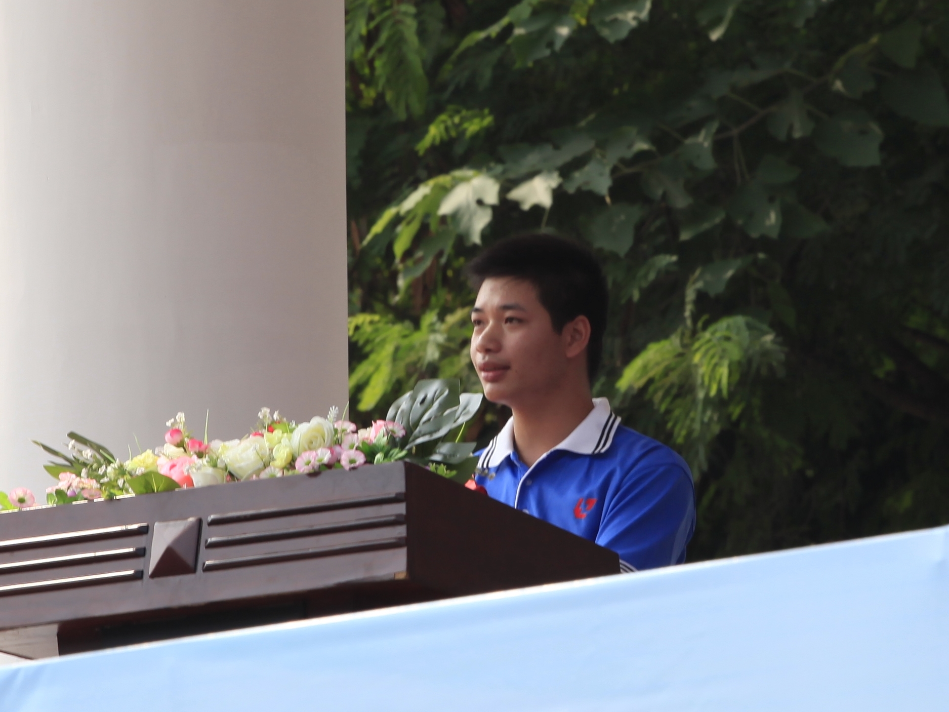 来自贸易与旅游管理系2015级航空服务专业的新生代表卢慧同学,代表全体新生表示:要立志树立远大理想、相互团结、尊师肯学、严于律己,努力学习,务实创新,力争通过三年的专业学习成为一名高素质的优秀人才。