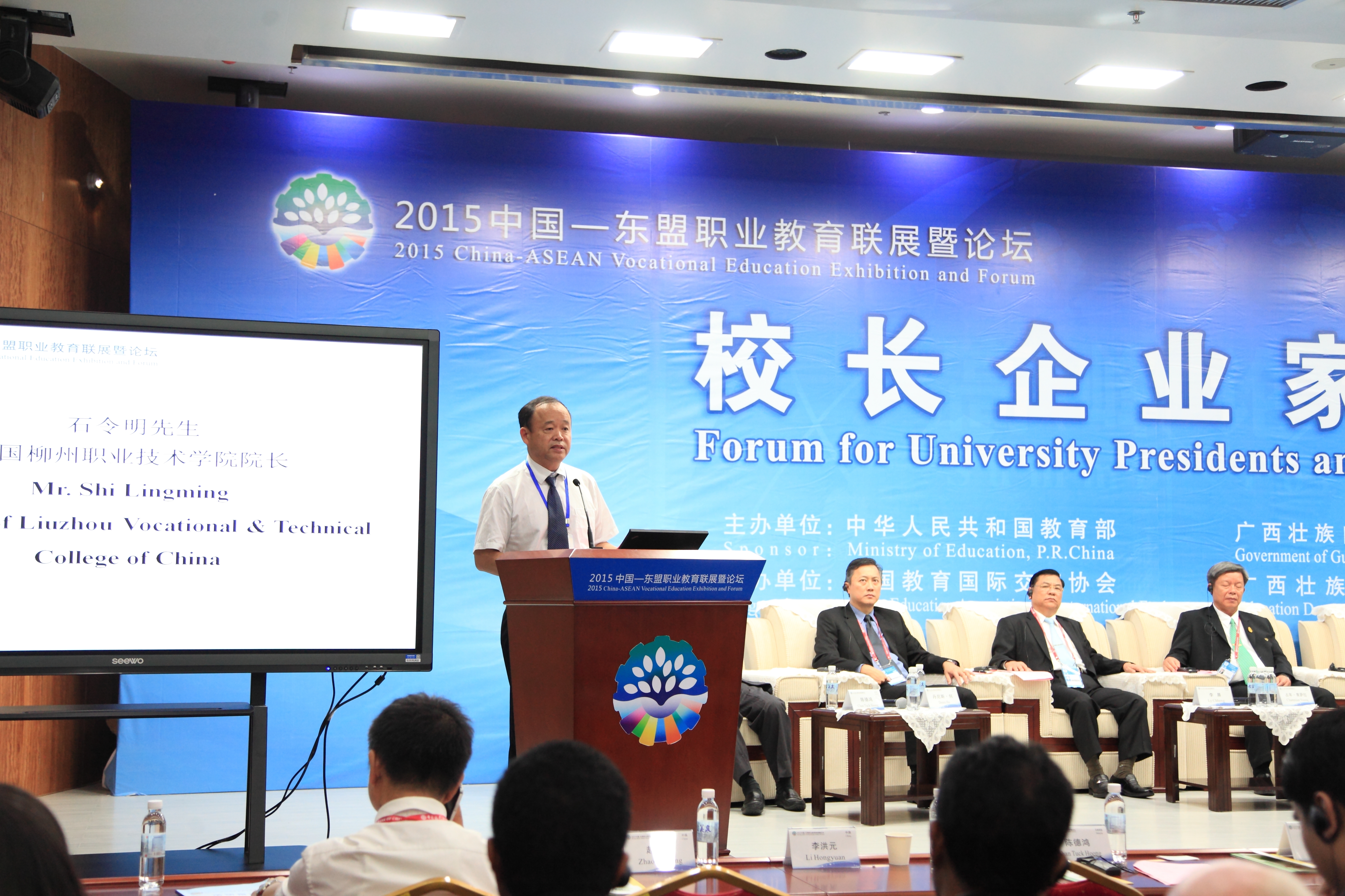 19日上午,石院长代表广西高职院校,在2015中国—东盟职业教育联展暨“校长企业家论坛”上做了题为《打造国际化技术技能人才,助力区域经济一体化发展》的发言,与参会人员共同探讨如何打造面向区域未来人力资本的问题,分享学院在国际化技术技能人才培养方面的思考与体会。 -