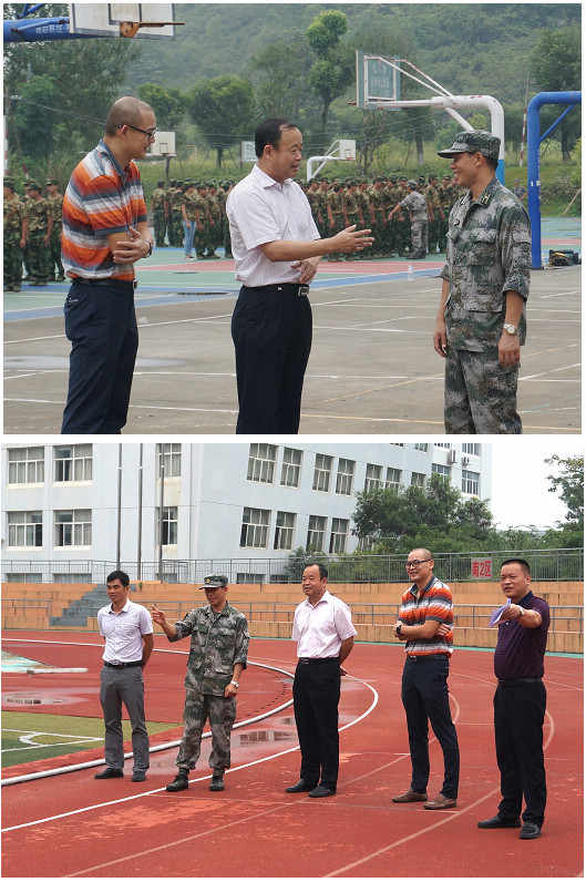 新闻网消息(通讯员/保卫处 喻军华 图/校园电视台)9月22日上午,院长石令明、副院长瞿凡及承训部队领导,在武装部部长莫帮雄、学生工作处处长唐冬雷、武装部副部长钟旭的陪同下,看望并慰问了正在紧张训练的部队教官和参训学生。