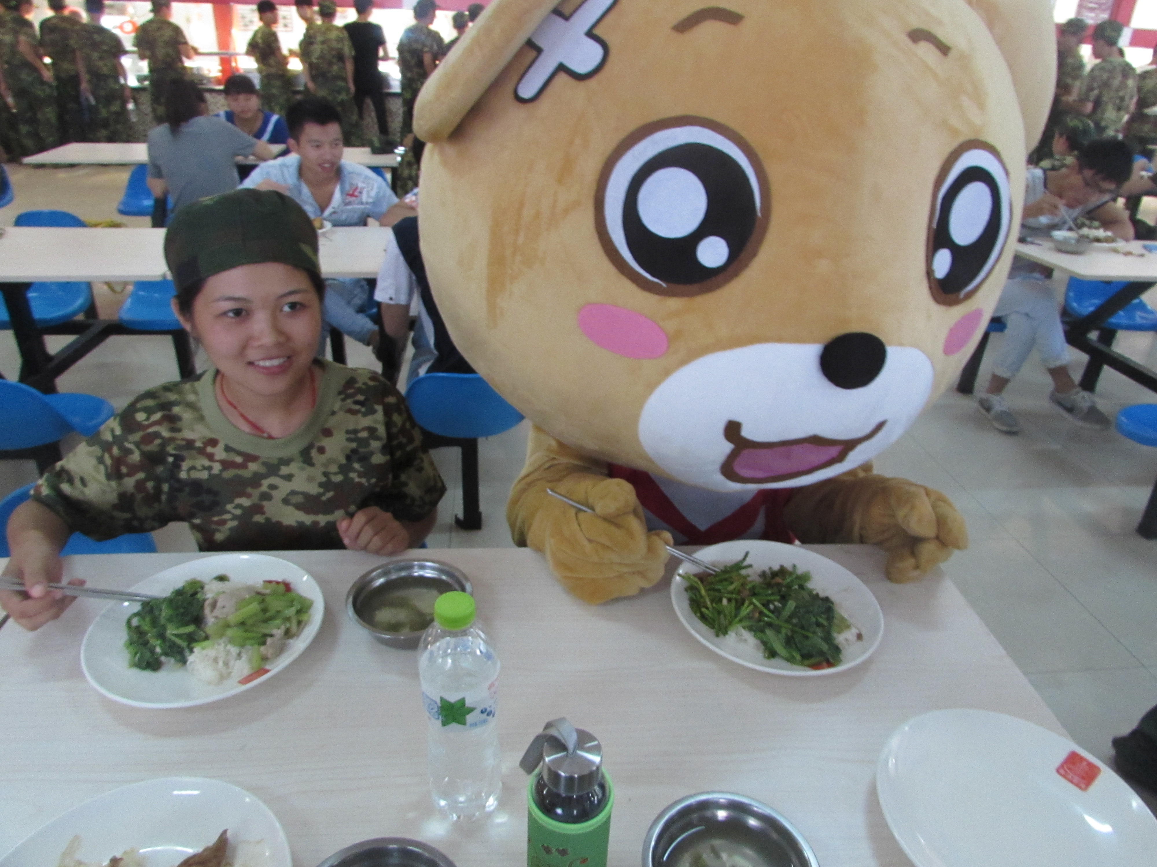 易班工作站自新生军训伊始就以亲和、趣味的形象深入军训场中与2015级柳职院新鲜人一起畅聊军训趣闻,一起互动打军体拳,一起在温馨的食堂就餐,从军训到日常新生活的点滴,我们“易”起畅聊,“易”起互动。在军训场,萌萌哒易班熊与机械制造一班的男汉子们打着颇有意思的军体拳,与财务管理专业的美女们轻松玩转反手摸肚脐......互动结束后,易班工作站还为积极参与互动的新生送上精心准备的暖心小礼物。