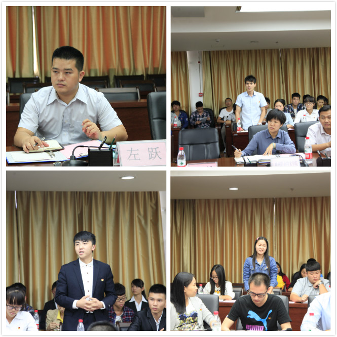 广西学联驻会主席左跃与部分学生团干代表在现场交流