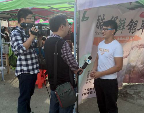 活动现场,贸旅系电子商务专业、市场营销专业200多名学生活跃在各个岗位,指导观赛嘉宾扫描二维码关注微商城,以使优农联盟微商城粉丝数量和忠实客户快速增长。而在辅助主办方完成大赛流程、协助参赛商家开展产品展销促销的过程中,学生们对于商品的陈列摆放、产品卖点的提炼与释放、客户的接待与沟通、卖场的氛围塑造、现场成交技巧、现场的控制与管理等,也表现得十分出色,无不显示出现代营销专业群学生娴熟的营销沟通能力、产品推销能力以及应变能力和社交能力,吸引了柳州电视台新播报、摆古等多家媒体争相采访。