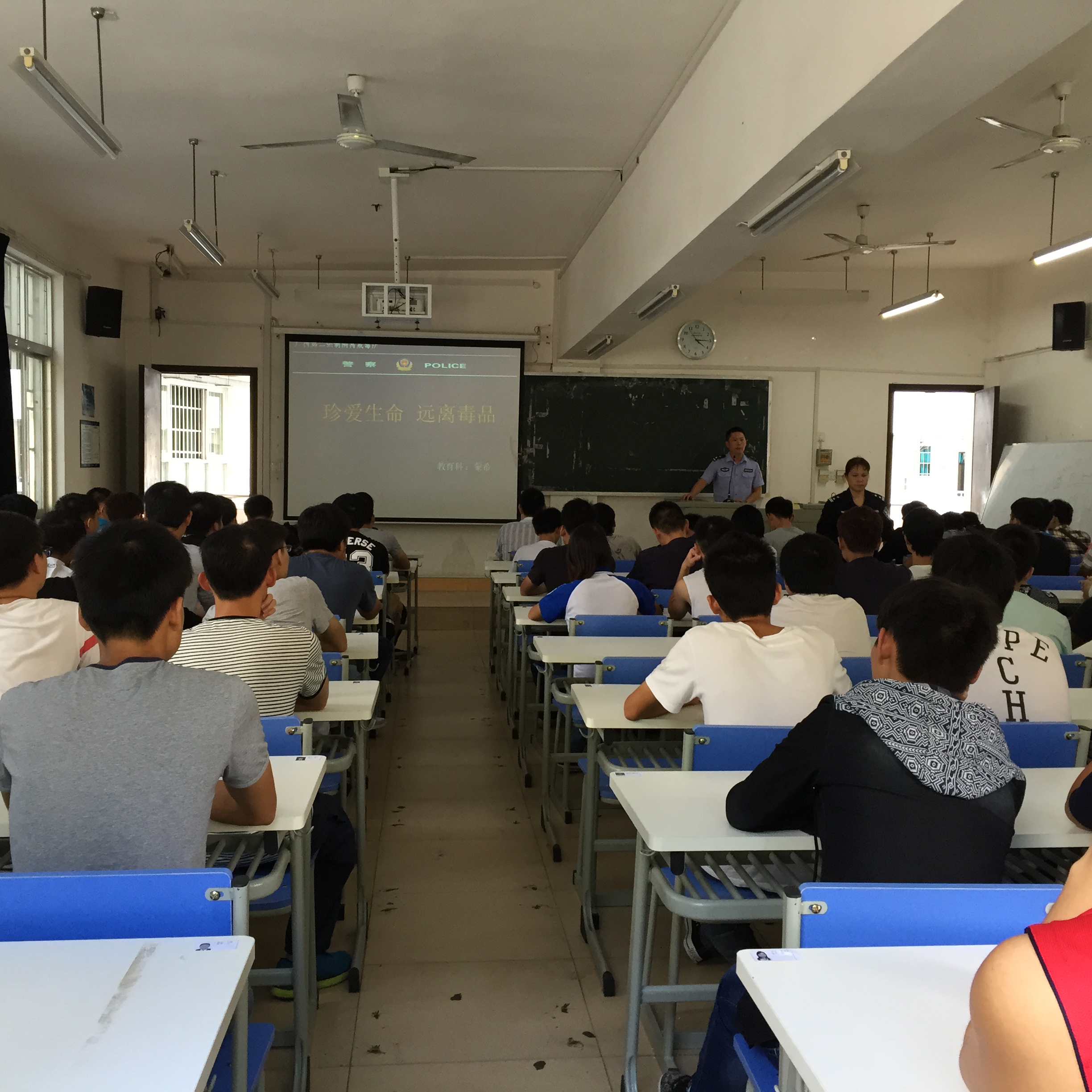 广西第二强制隔离戒毒所教育科副科长蒙希首先让在座的同学们听所里的两位学员讲述他们当年未珍惜亲情、怀着一种“好奇”心理而走上吸毒之路的惨痛经历。两位学员无不羡慕同学们拥有当下美好的学习时光,他们回首自己愚蠢、无知、任性的过往,伤害了父母、伤害了自己、毁了完整的家庭。两位学员用自己的失足经历让同学们深刻感受到毒品的可怕,而同学们也不断用掌声鼓励他们直面曾经的错误,勇敢战胜困难、重拾幸福生活。