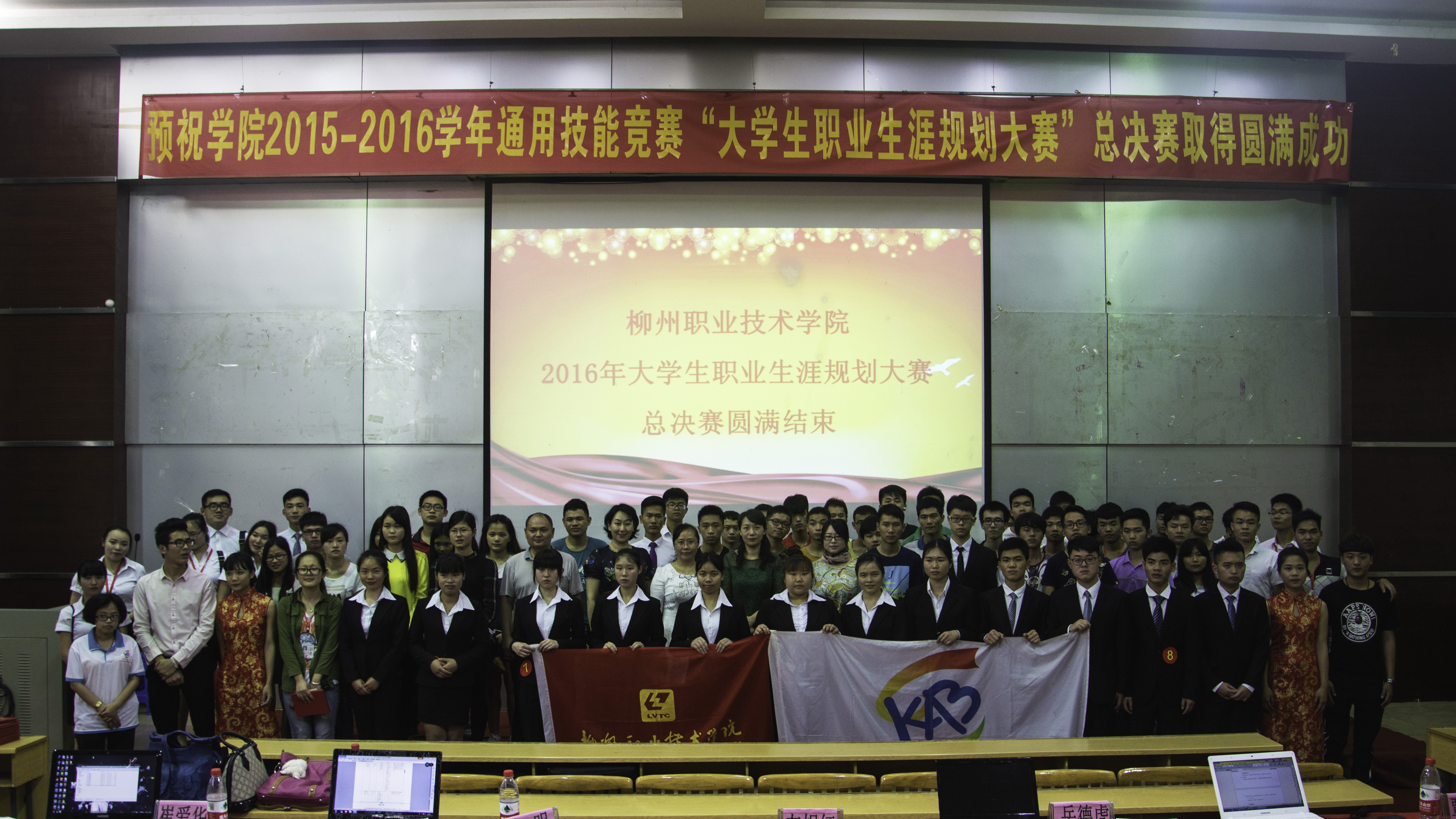 新闻网消息(通讯员/公共基础部 许明 大学生KAB创业俱乐部 李杰鑫、何琼希 摄影/大学生KAB创业俱乐部 蒙政宇)4月15日,由我院素质教育基地主办、就业与创业训练中心承办、大学生KAB创业俱乐部协办的柳州职业技术学院2015-2016学年通用技能竞赛“大学生职业生涯规划大赛”学院总决赛,在博闻楼110教室举行。经过初赛、复赛激烈角逐产生的12强选手在此进行终极对决。公共基础部大学生KAB创业俱乐部指导老师许明教授、左妮红教授、岳德虎副教授以及覃秉金、崔爱华老师担任本次大赛的评委。公共基础部副主任陈芳、李革、财经与物流管理系党总支书记高勇军、艺术设计系副主任雍佳到场观摩比赛。学院各社团代表、各系部学生代表以及对职业生涯规划感兴趣的同学共200多人观看了比赛。