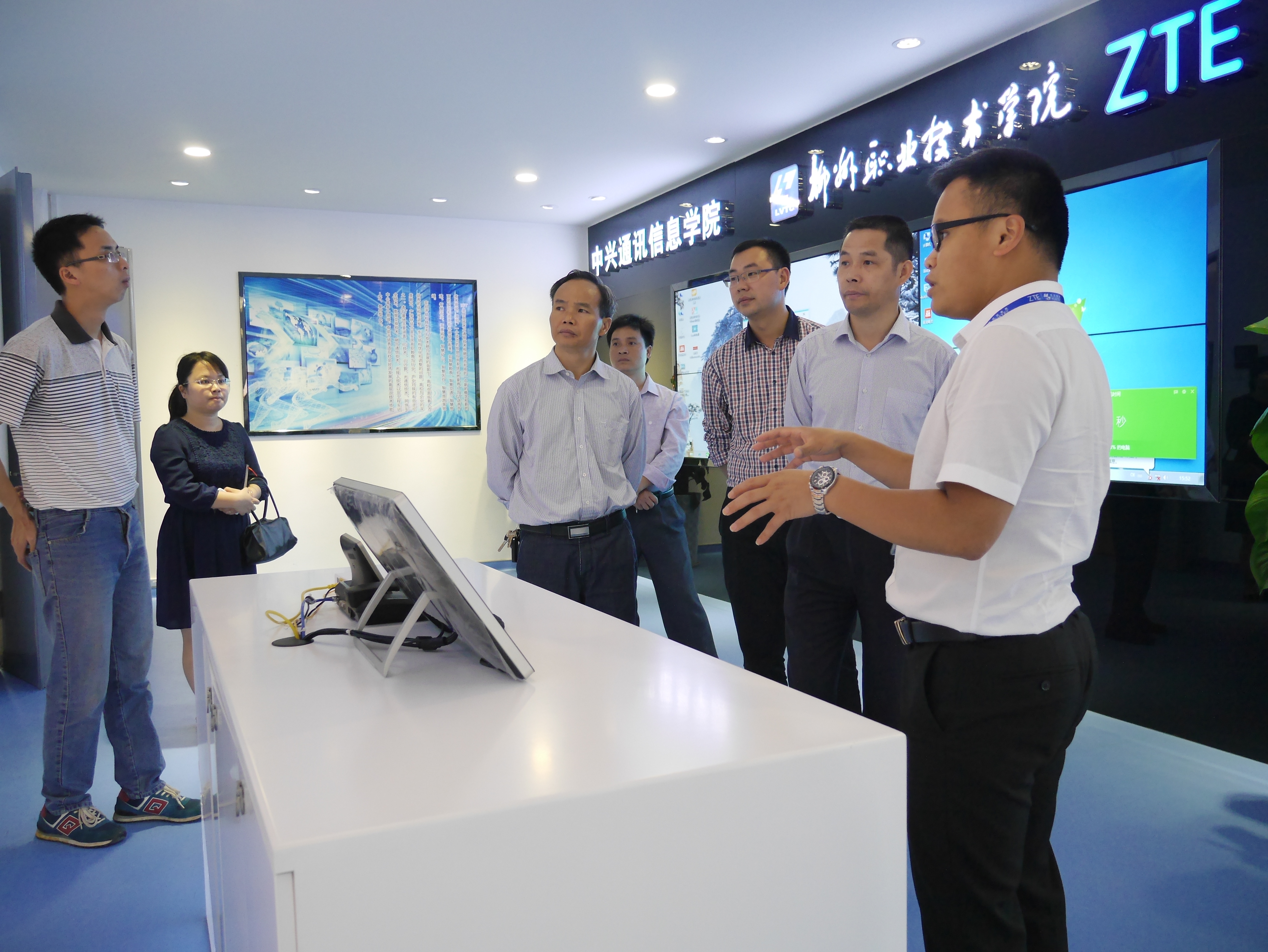 陈国清副书记一行饶有兴趣地参观了机电工程系实训基地、先进制造实训工厂、中兴通讯信息学院ICT创新基地及学生“一站式”服务中心。随后,宾主双方在行政楼300会议室进行了座谈交流。