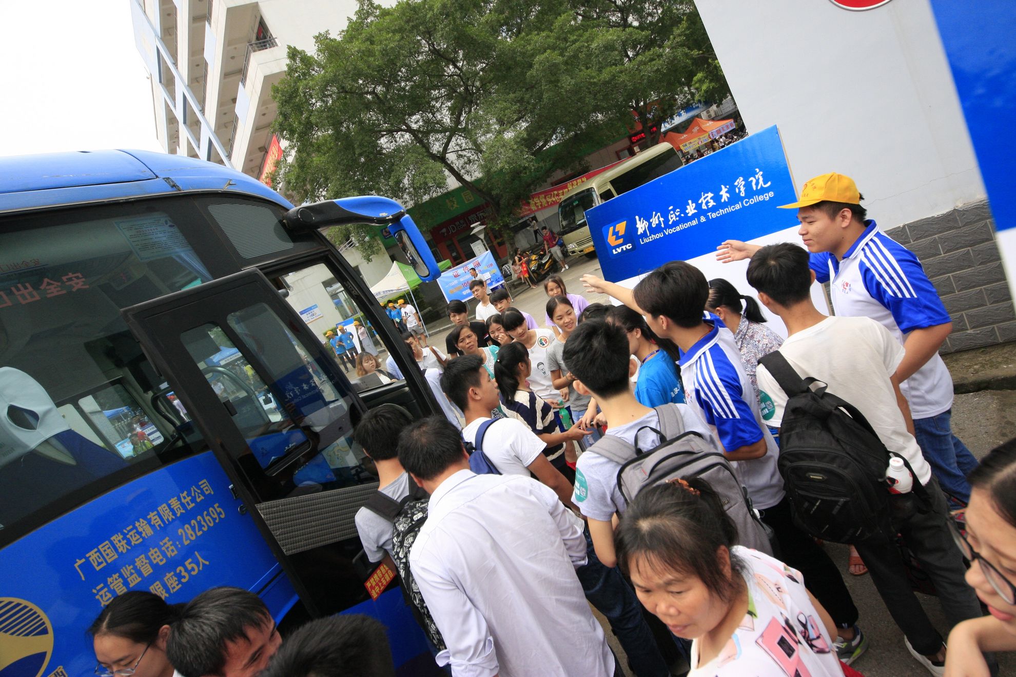 为保证迎新接待的顺利进行,校外的志愿者们到火车站、汽车总站、汽车南站、莲花客运站,根据二级学院和专业来引导、分流新生,根据不同颜色的新生识别贴统一引导、统一坐校车回校,边帮忙拿行李、边向新生介绍学校基本情况,到校后再由校内的志愿者负责引导新生注册,直到把新生送到宿舍。