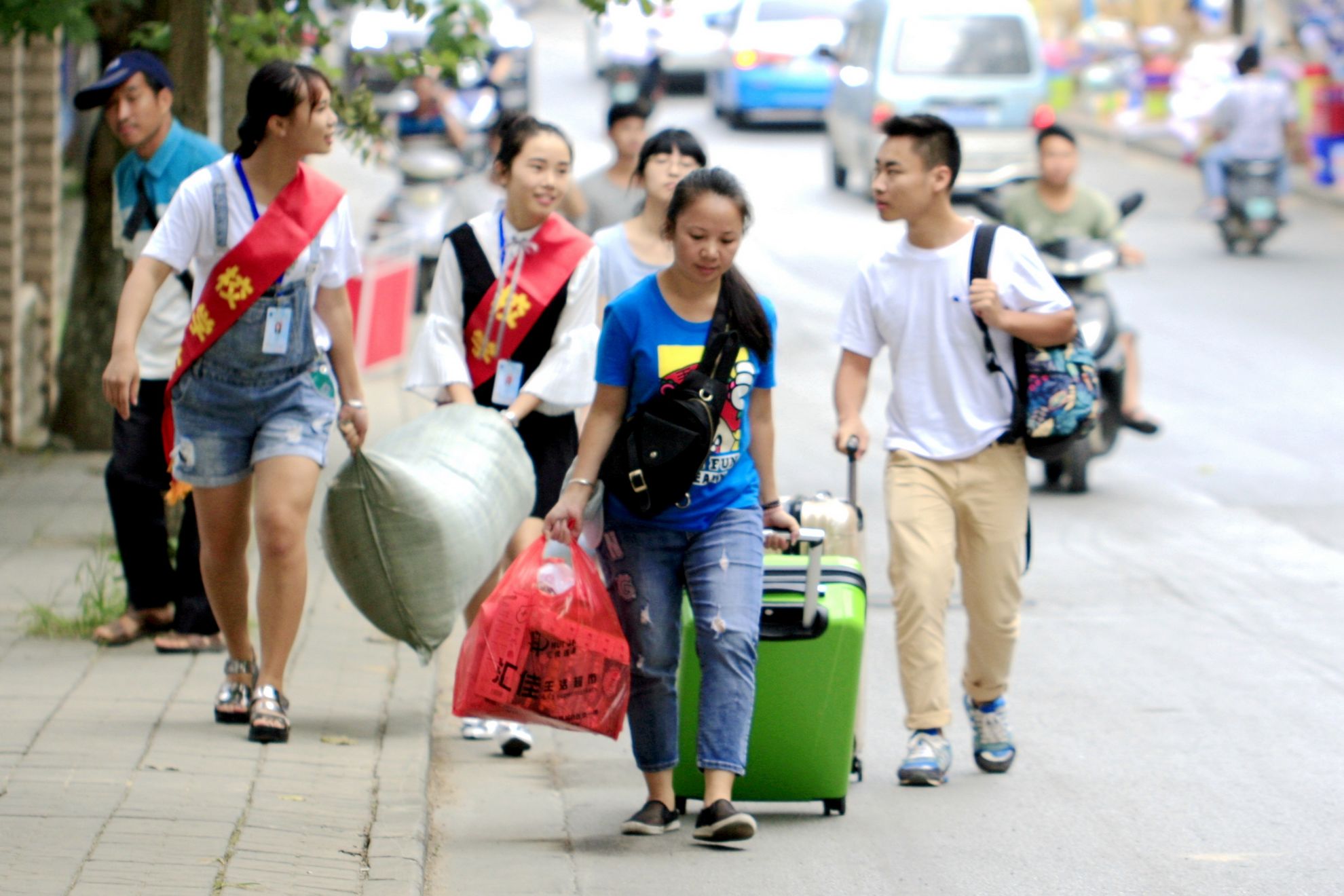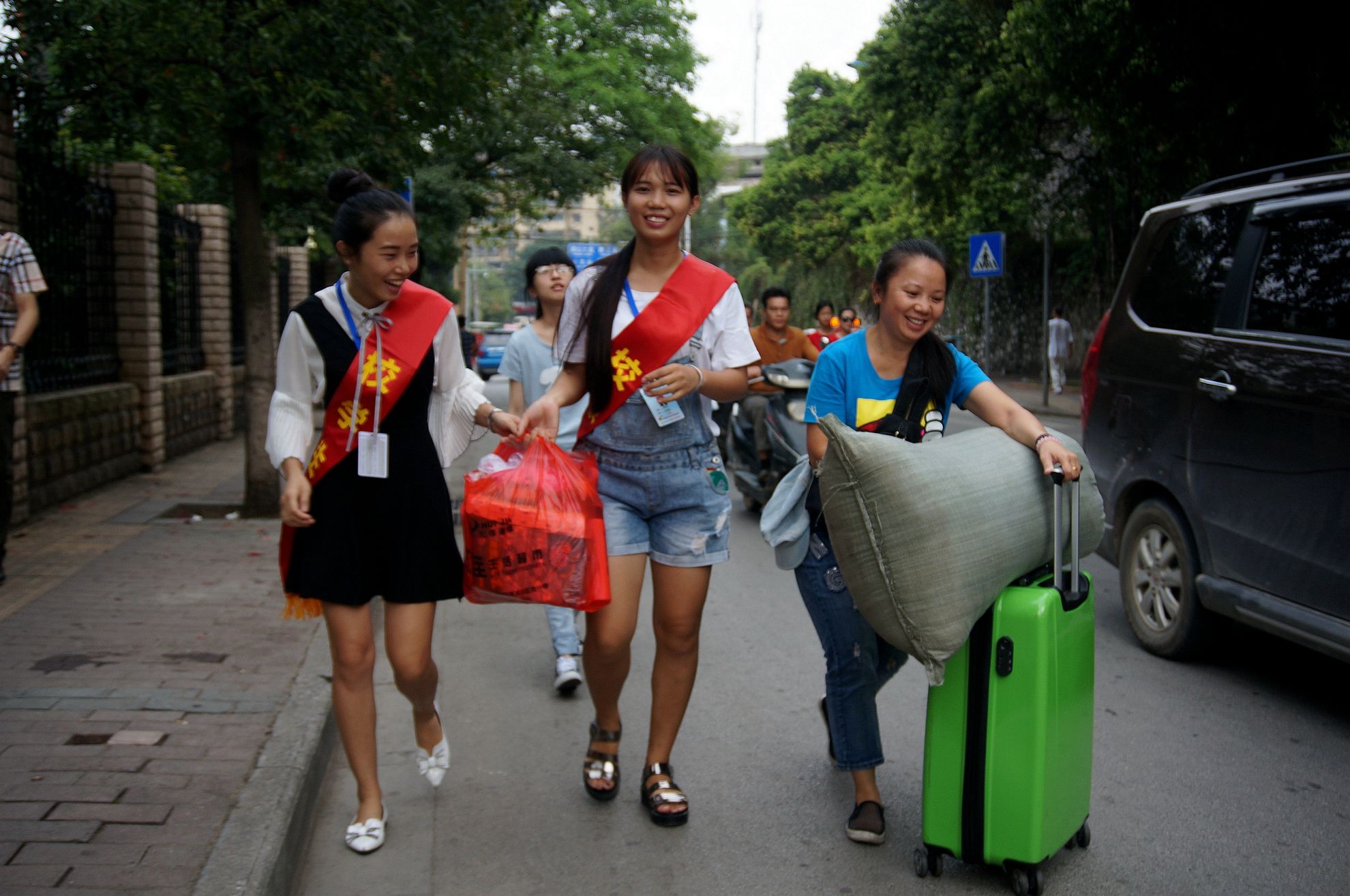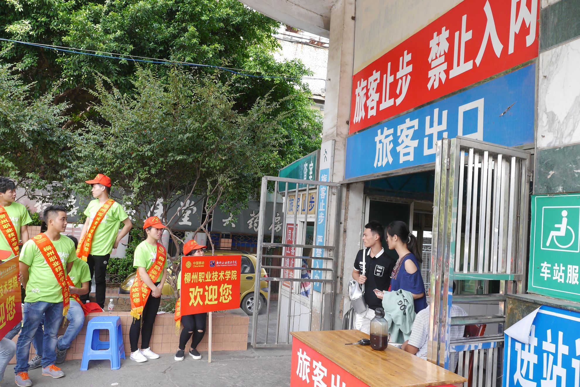 站外,在各大车站迎新的志愿者们,辛苦却毫无怨言。
