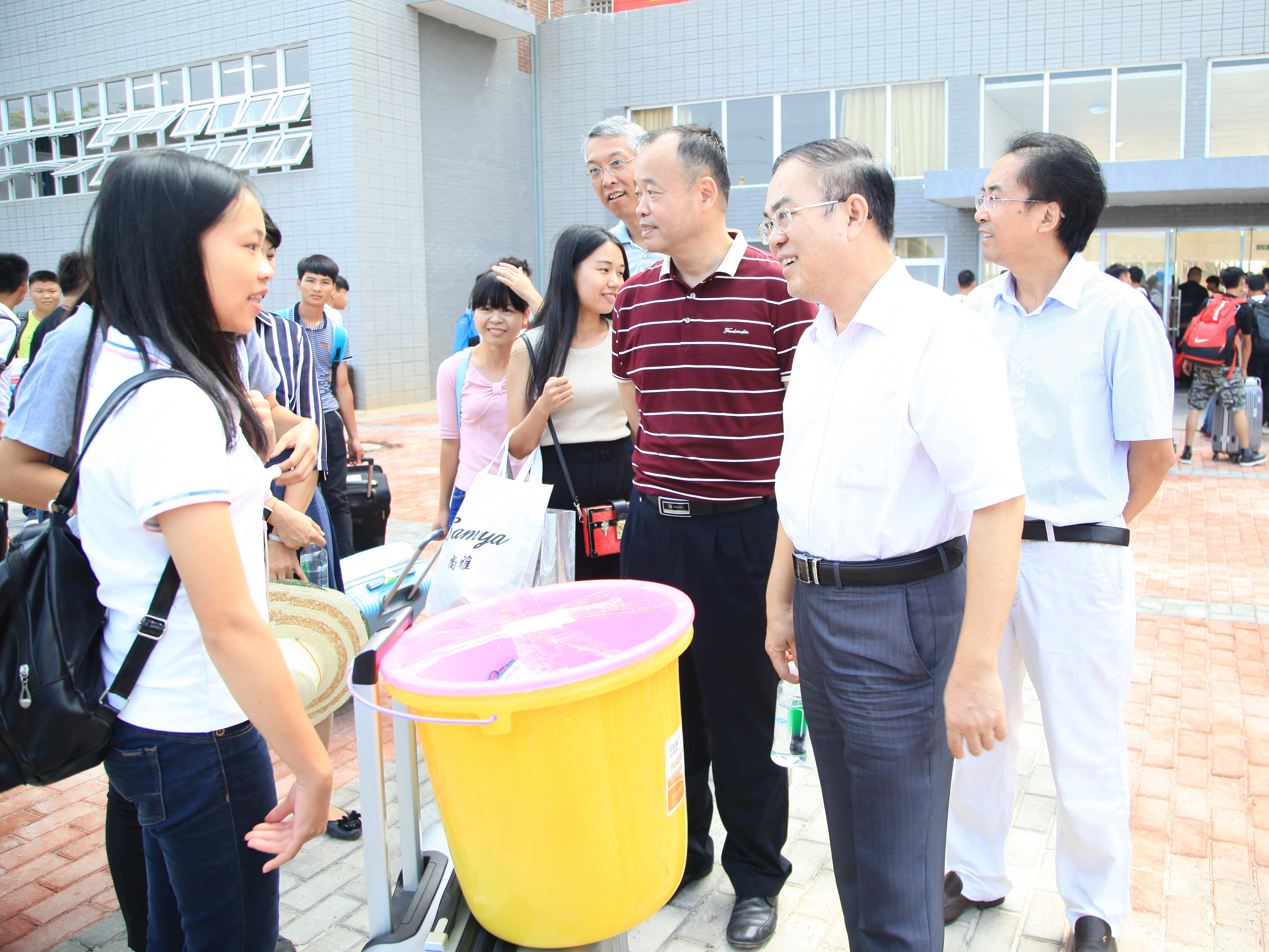 校领导早就到新校区等候同学们了