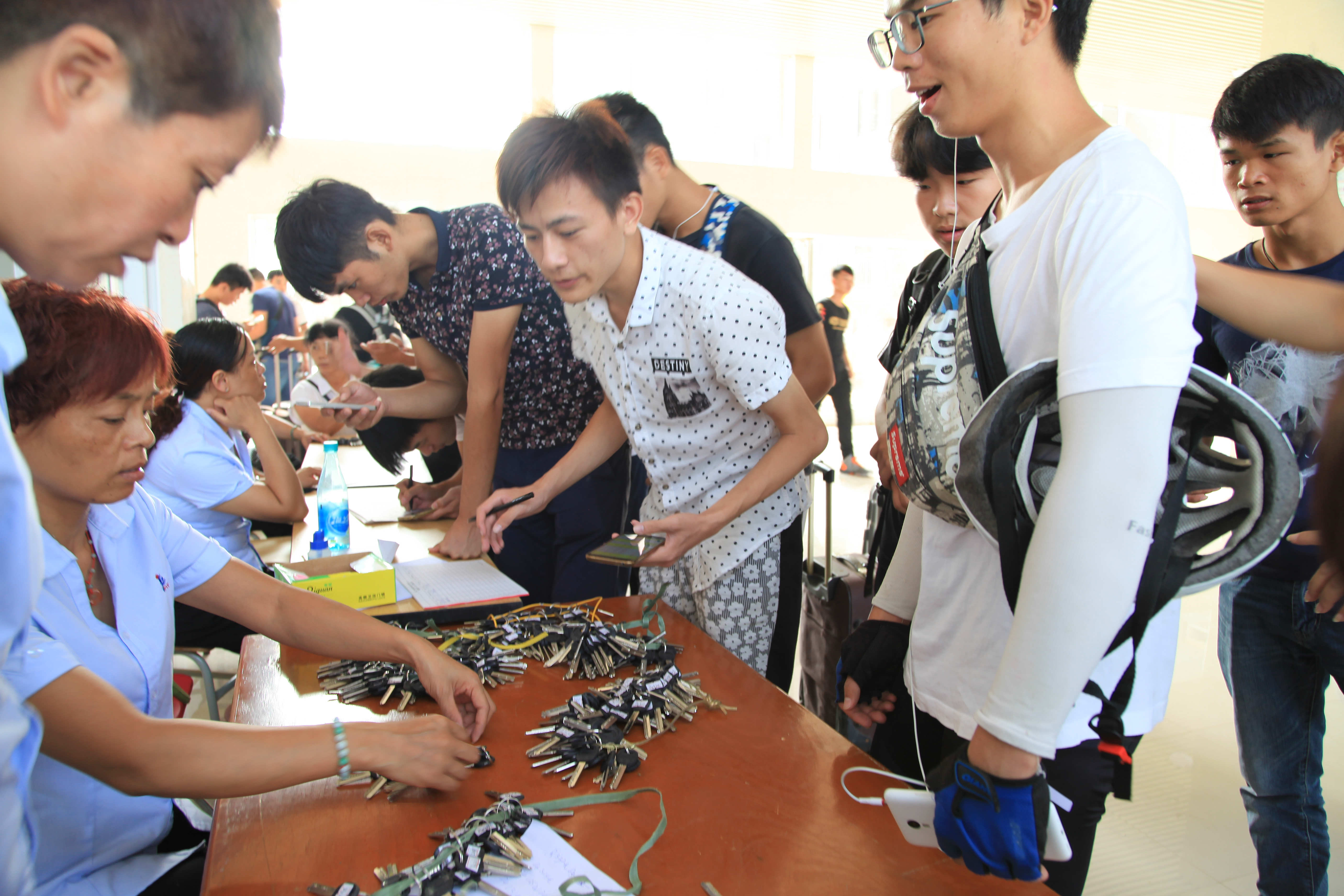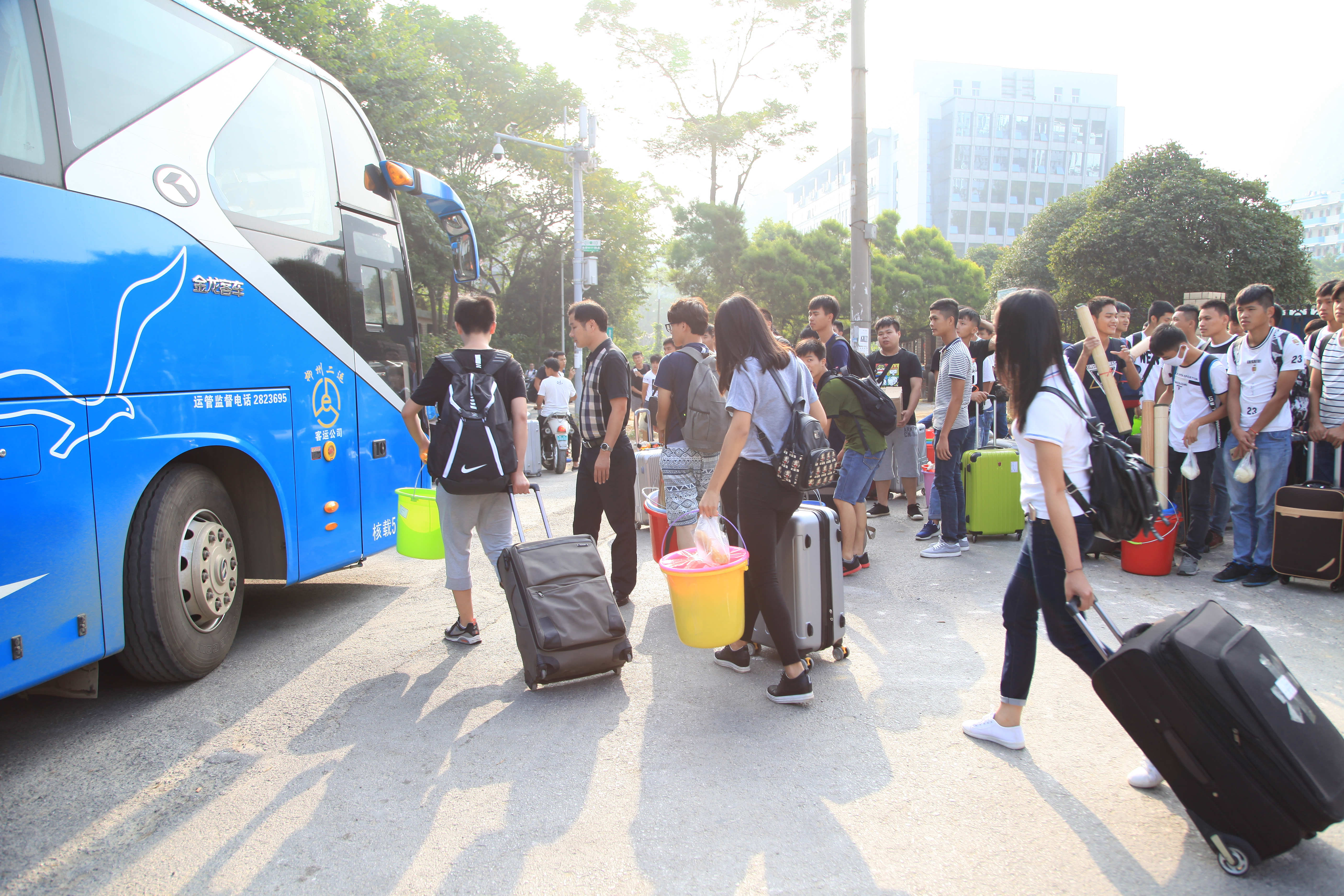 在机电工程学院领导王大红、吴坤的统一指挥和辅导员们的紧密配合下,同学们有条不紊地把行李一件件地往车厢里面放。看,同学们个个心里都充满了期待。谁能不期待?那是一片全新的校区,同学们将在那儿度过难忘的三年光阴。