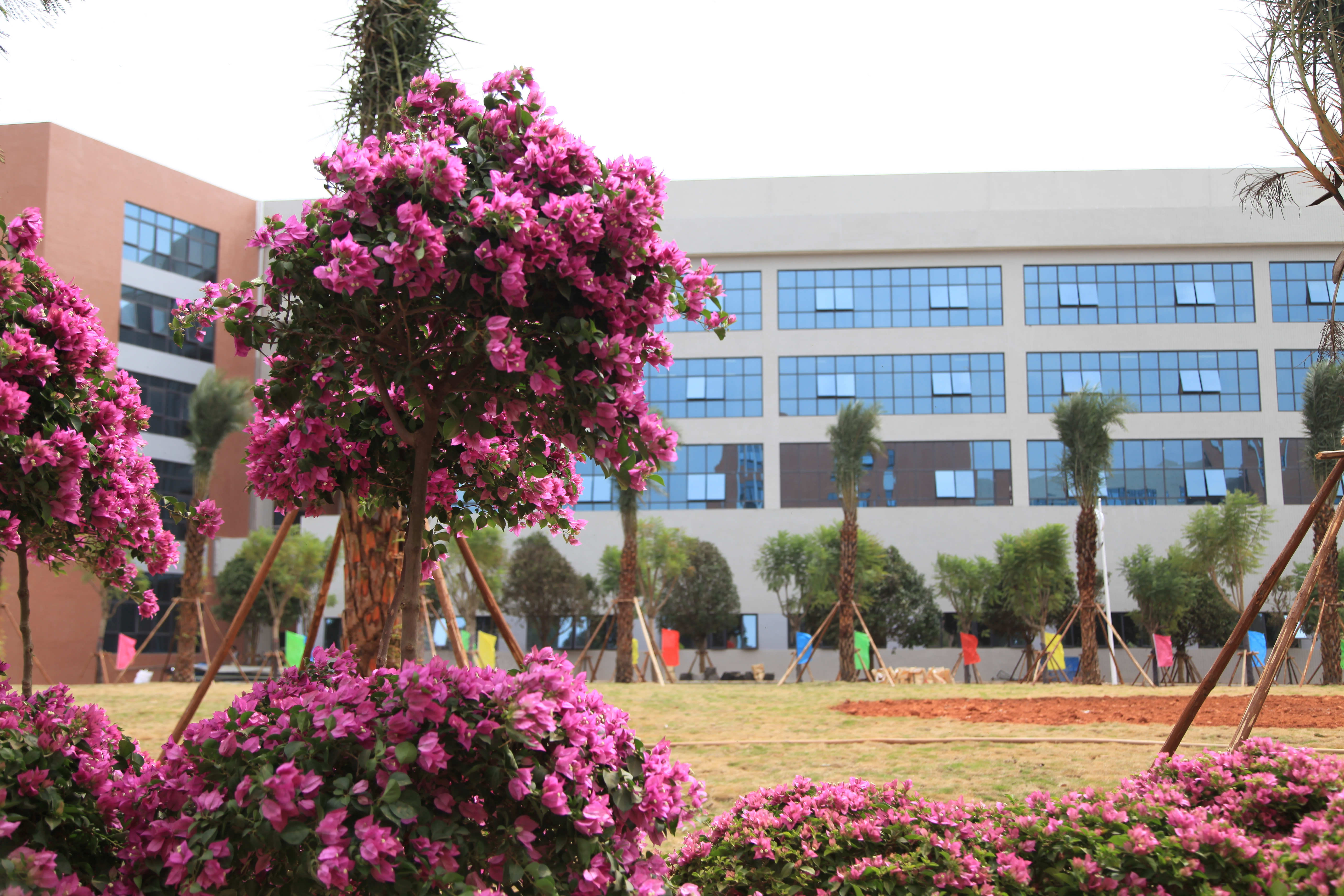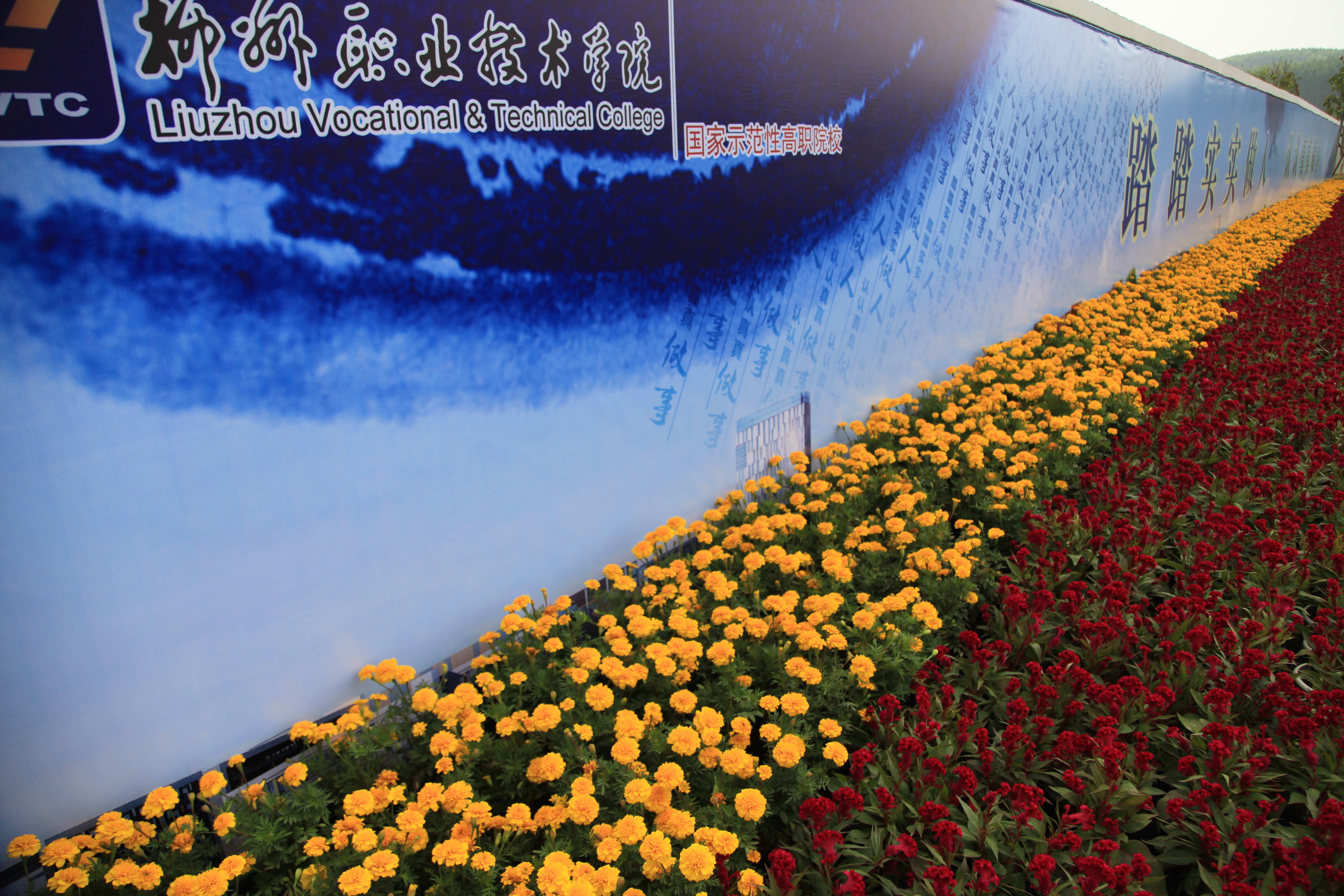 吐露芳香的鲜花正在迎接同学们的到来