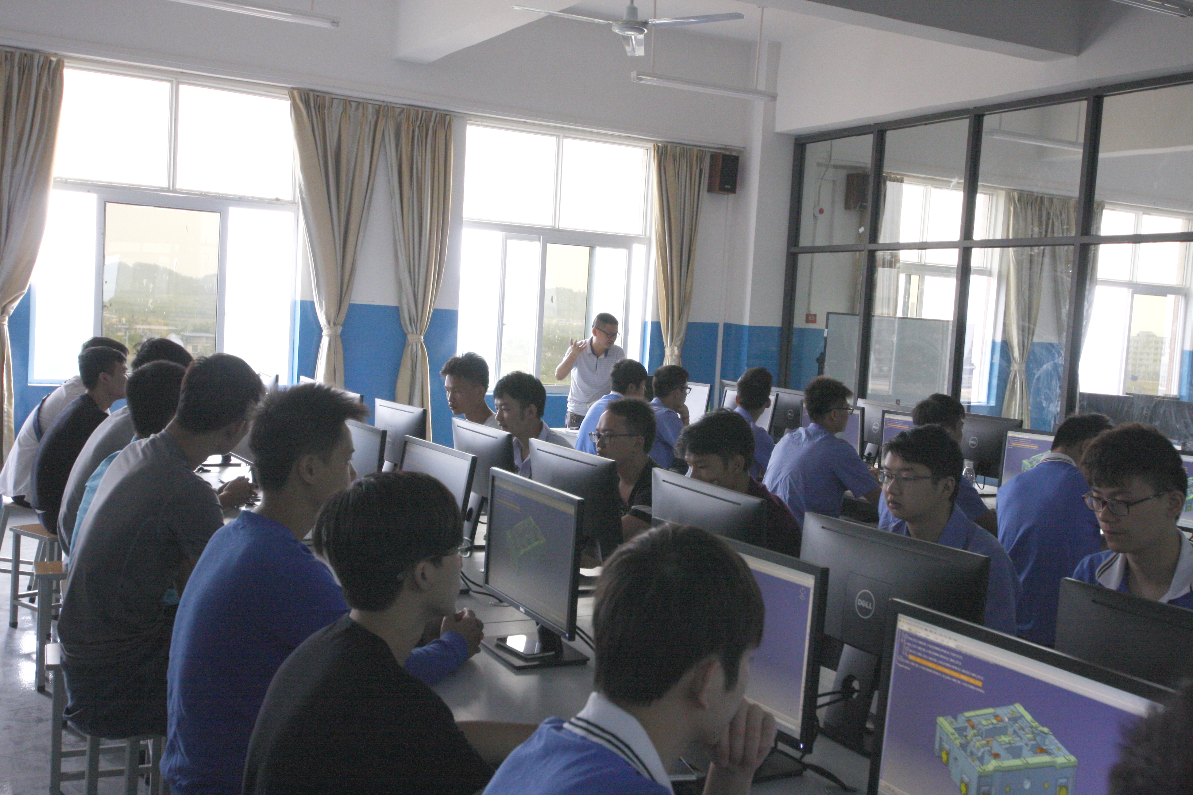 在3#教学楼T5W-506教室,谷礼双老师在给2015级数控技术1班的同学上《机械结构分析与设计》课。只见谷老师使用着新的教学设备交互式电子白板清晰流畅地给学生授课。对全新引进的交互式电子白板这一电子教学设备,谷老师满心欢喜:“新设备的使用减少了电脑到屏幕之间来回走动的次数,节约了宝贵的教学时间,这比以前好多了。”