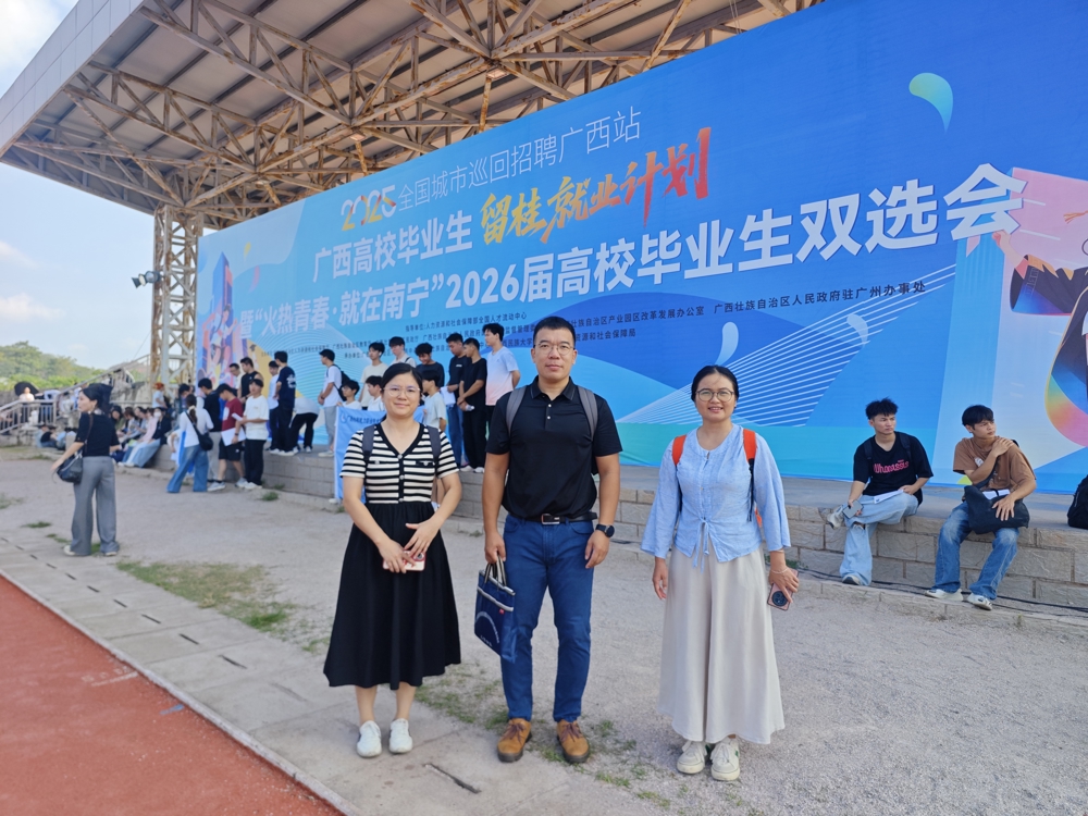 新闻网消息(文/招生就业处蔡贤浩 图/机电工程学院 周小惠)2025年10月11日,2025年全国城市巡回招聘广西站——广西高校毕业生留桂就业计划暨“火热青春·就在南宁”2026届高校毕业生双选会在广西民族大学举行。本次双选会作为广西站的首场秋季大型招聘活动,汇聚了417家用人单位,提供就业岗位1.1万个。我校3位教师代表参与此次双选会,深入了解就业市场情况,为毕业生带回了最新的岗位资源和就业信息。