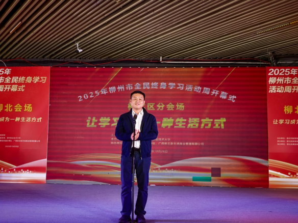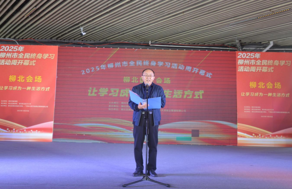 柳北区教育局党组成员、区委教育工委委员黄迪发表开幕式致辞。他表示,举办全民终身学习活动周,不仅是贯彻落实党中央重大决策的责任担当,也是一份面向未来、敢为人先的具体行动,更是带头弘扬和践行全民终身学习理念、为百姓谋求幸福生活的实际行动,他热切希望每一个人都能成为全民终身学习理念的追随者和传播者。